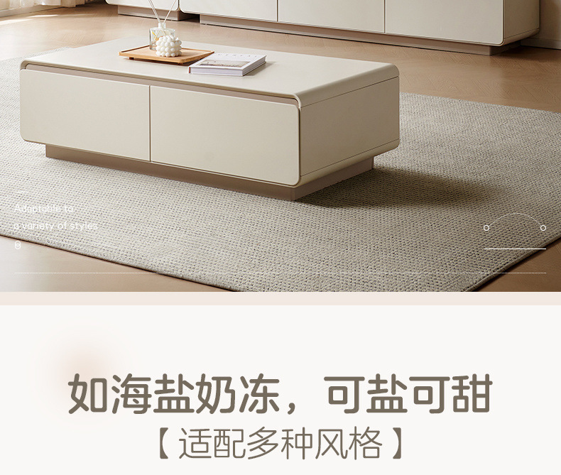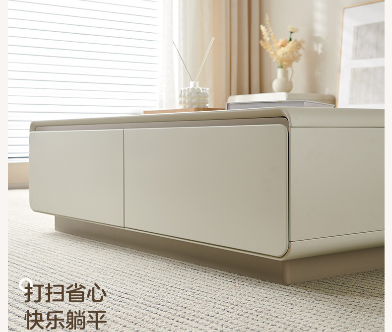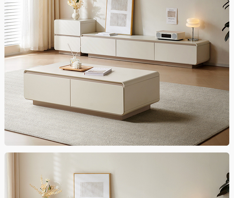 Современный кофейный столик в кремовом стиле, комбинация с ТВ-кабинетом, простой ТВ-кабинет, напольный диван, кофейный столик для гостиной