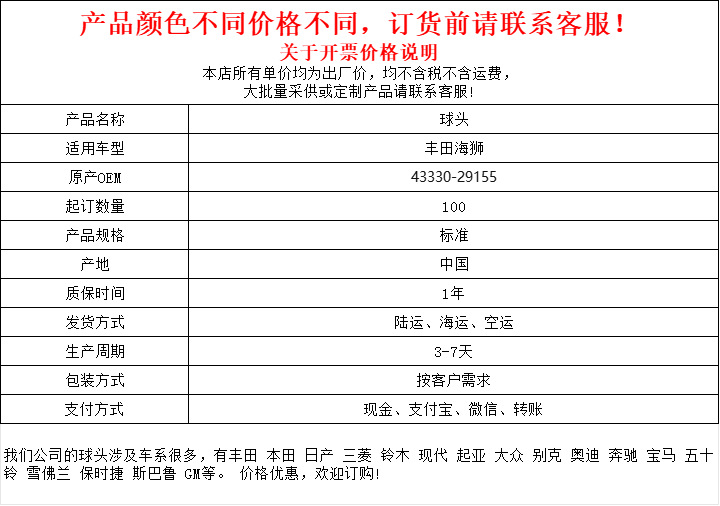 43330-29155 производитель прямое предложение шаровая голова для Toyota Hiace