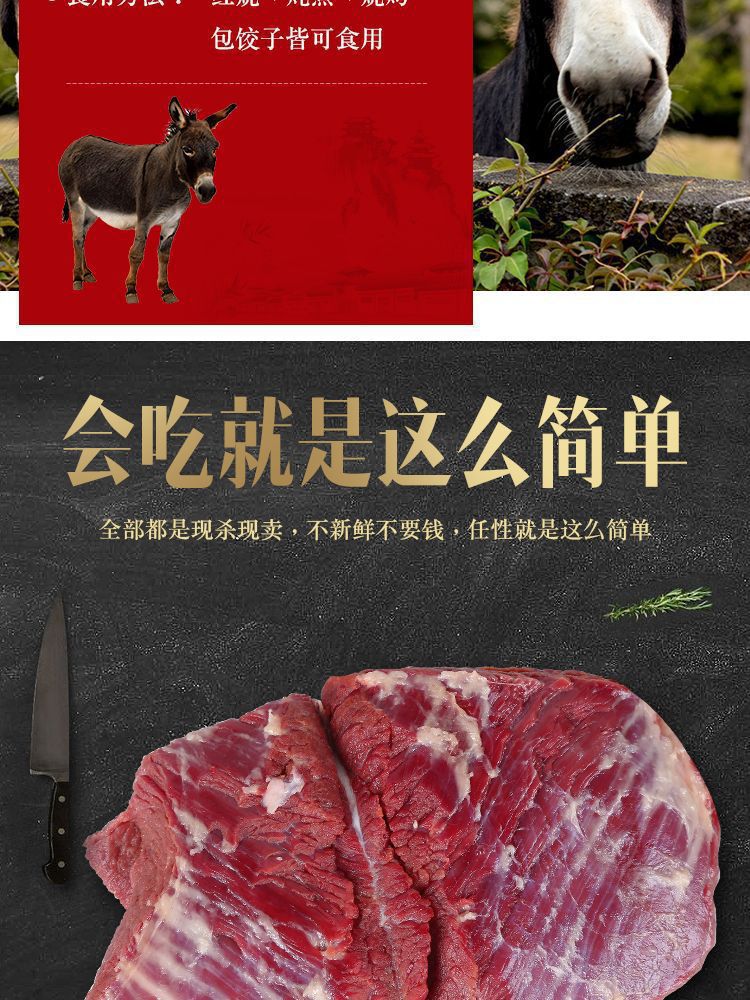 Свежезабитое мясо осла, сырое мясо осла, фермерское, свободно выгуливающееся, большие куски, вакуумная упаковка, настоящее мясо осла, свежее