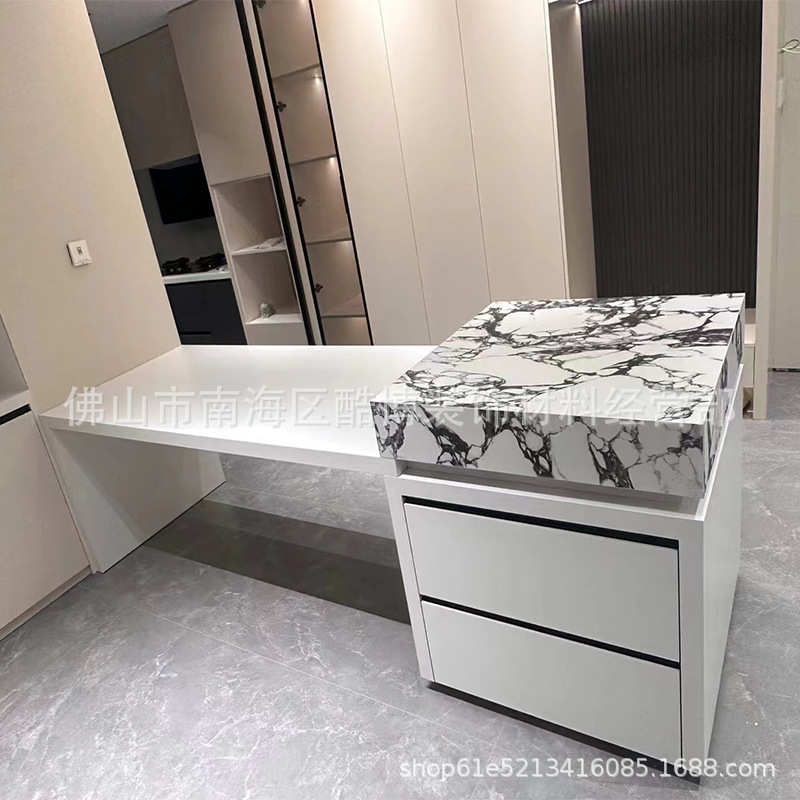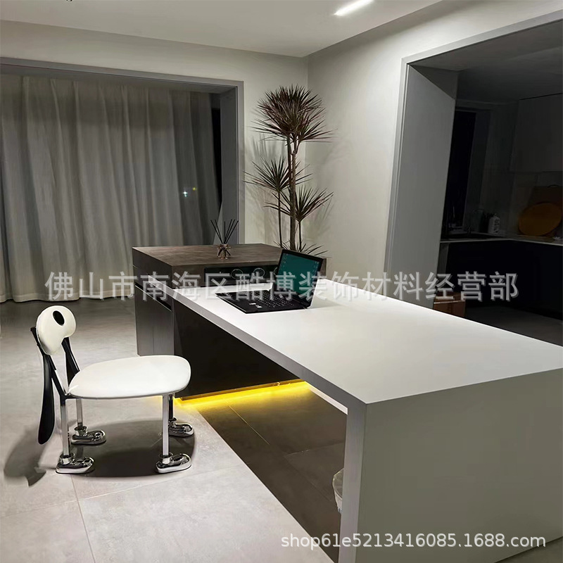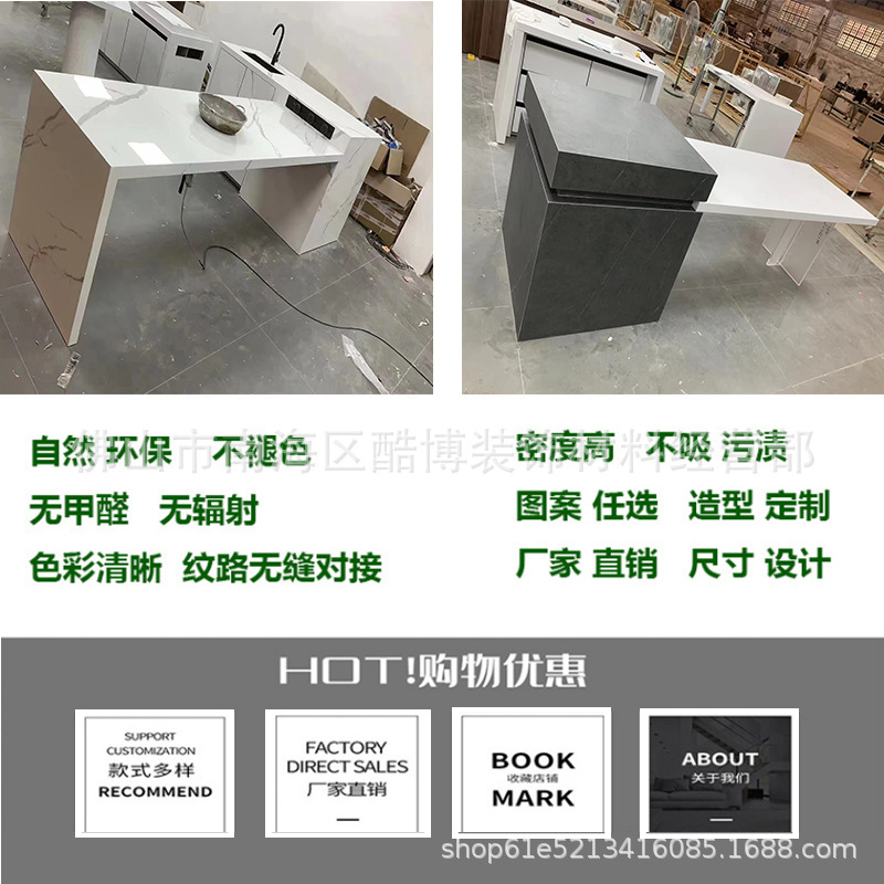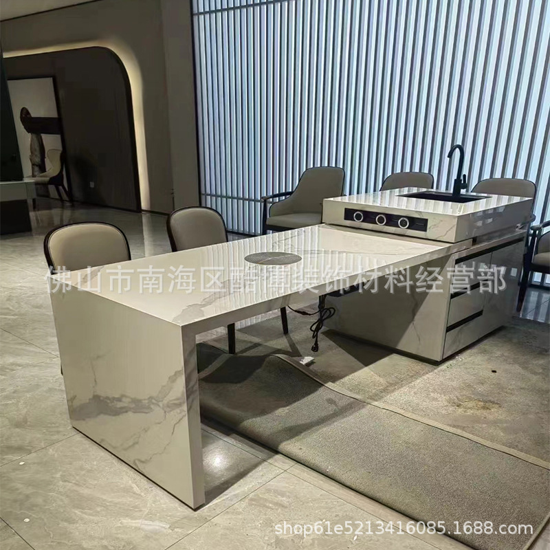Стол для обеденной зоны из сланца с интегрированным раскладным стулом и индукционной плитой, современный кремовый стиль для квартиры