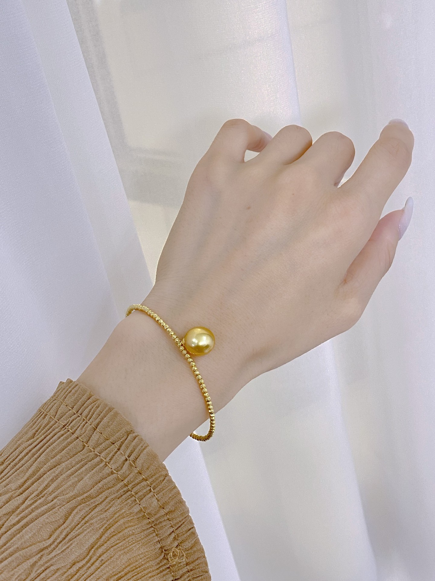 G18k金细闪小球海水珍珠手镯💫💫 高级优雅 精致轻奢 时尚百搭 10-11mm海水南洋金珍珠 皮光细腻透亮 圆润饱满 天然浓金色