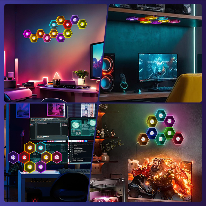 Квантовое Зеркало Шестиугольная Соты Свет Звуковое Управление Подъем Сборка DIY Стенная Лампа Игровая Атмосфера Свет Приложение