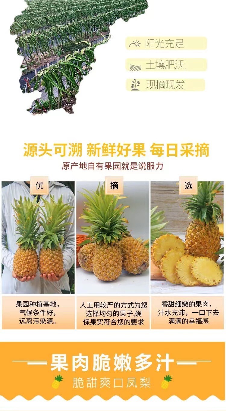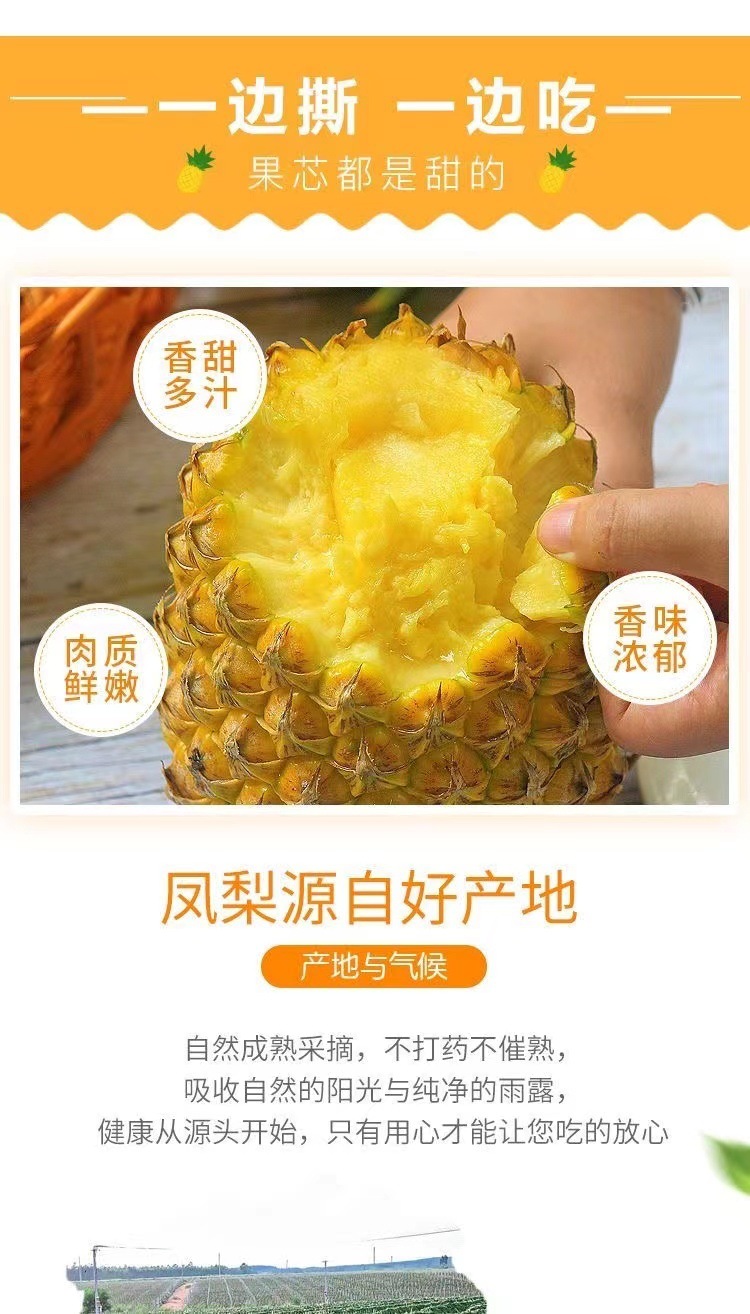 С Коробкой 2.5кг Ананас Хайнань Золотой Алмаз, Сладкий и Сочный, Свежий 10 Сезонных Фруктов для Беременных Женщин, Ручная Рвка Безглазый Ананас