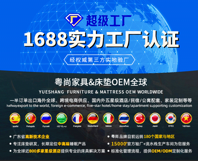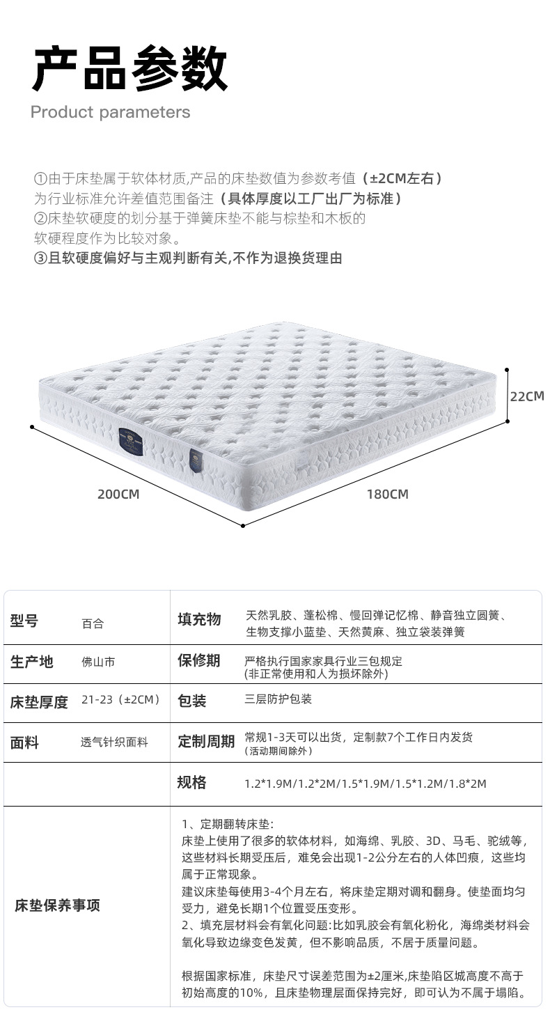 ![]() | Type c vienna standard (slightly softer) 22cm: skin-friendly fabric + latex + memory foam + m reinforced independent pocket spring | 1500*2000mm | ¥980.0 / ≈ 11 920 ₽ | 997 | 6035675330085 | |