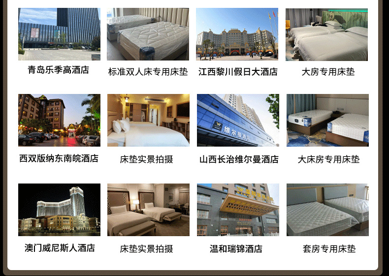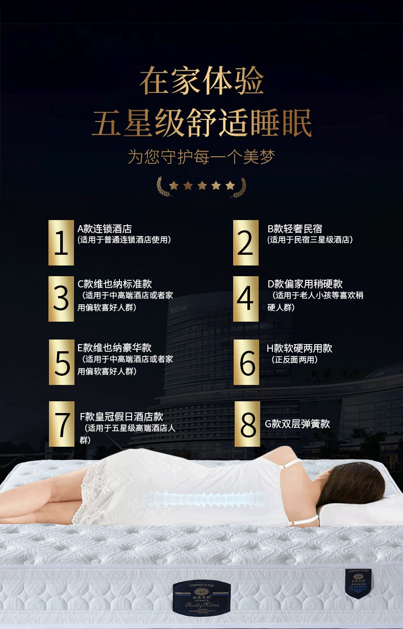 ![]() | F type crown holiday hotel type (softer) 25cm: skin-friendly fabric + 5cm natural latex + m reinforced independent pocket spring | 900*1900mm | ¥1100.0 / ≈ 13 380 ₽ | 999 | 6035675330069 | |
