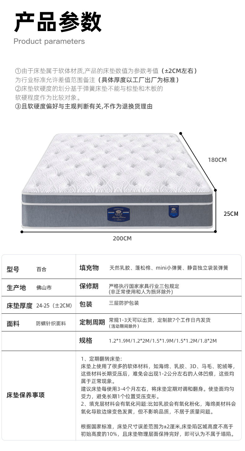 ![]() | F type crown holiday hotel type (softer) 25cm: skin-friendly fabric + 5cm natural latex + m reinforced independent pocket spring | 1800*2000mm | ¥1360.0 / ≈ 16 542 ₽ | 999 | 6035675330097 | |