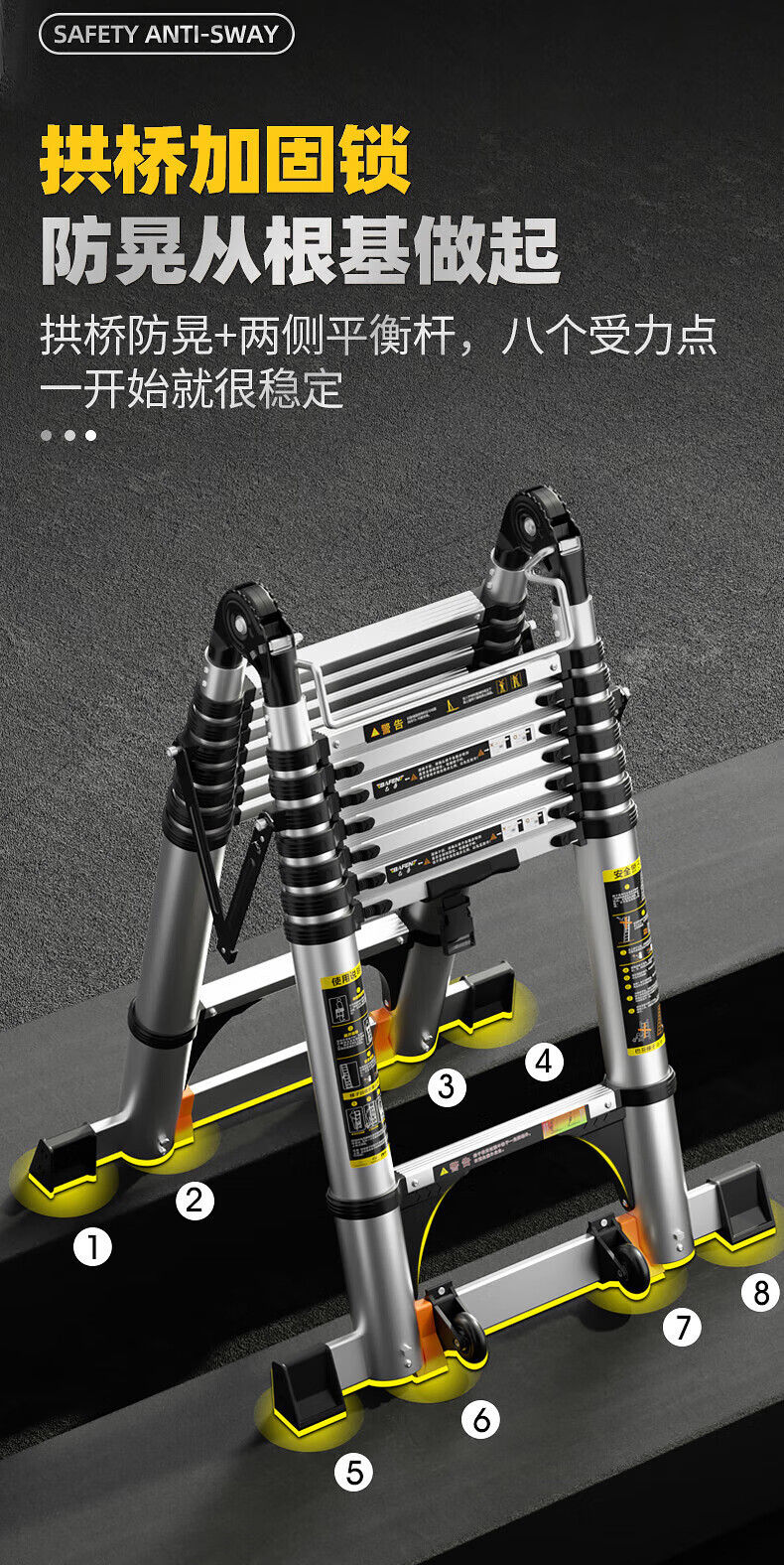 Складная лестница Midoli, многофункциональная, телескопическая, утолщенная, регулируемая по высоте