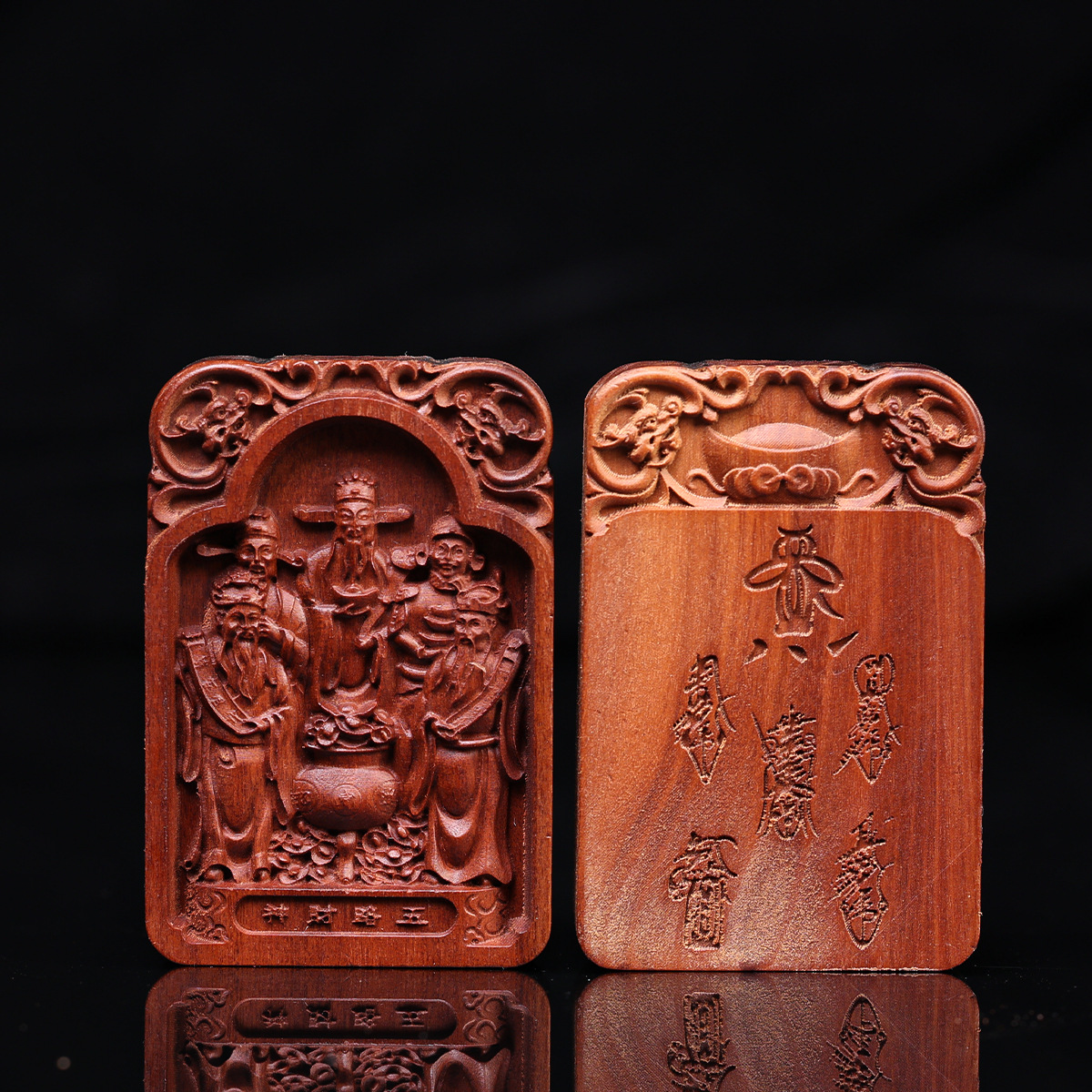 [Долина Лонгху] Подвеска из дерева жожоба, бог богатства, двусторонняя резьба