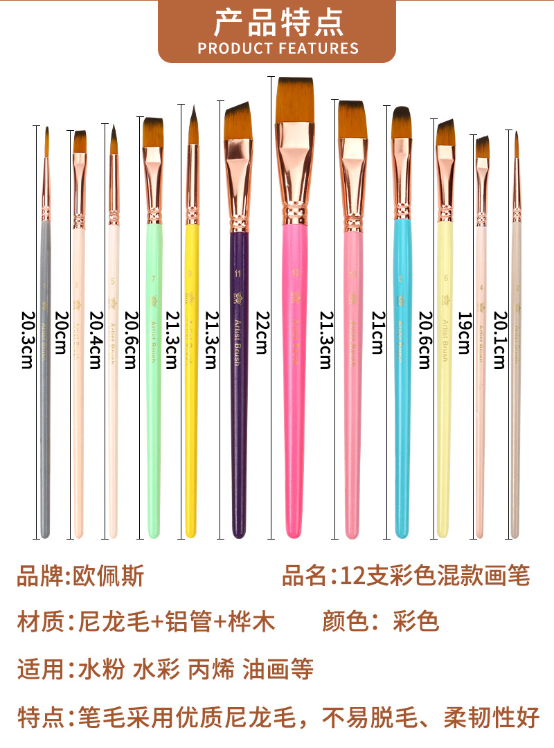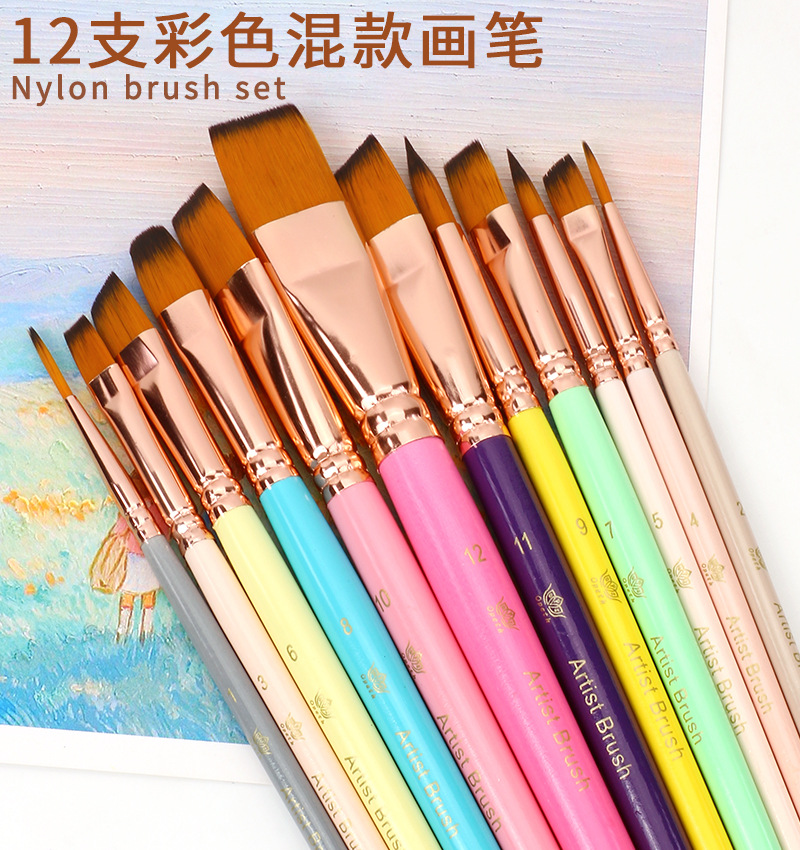 12 цветных нейлоновых кистей, смешанные художественные принадлежности, набор для начинающих, рисование на стенах, пигмент, кисть
