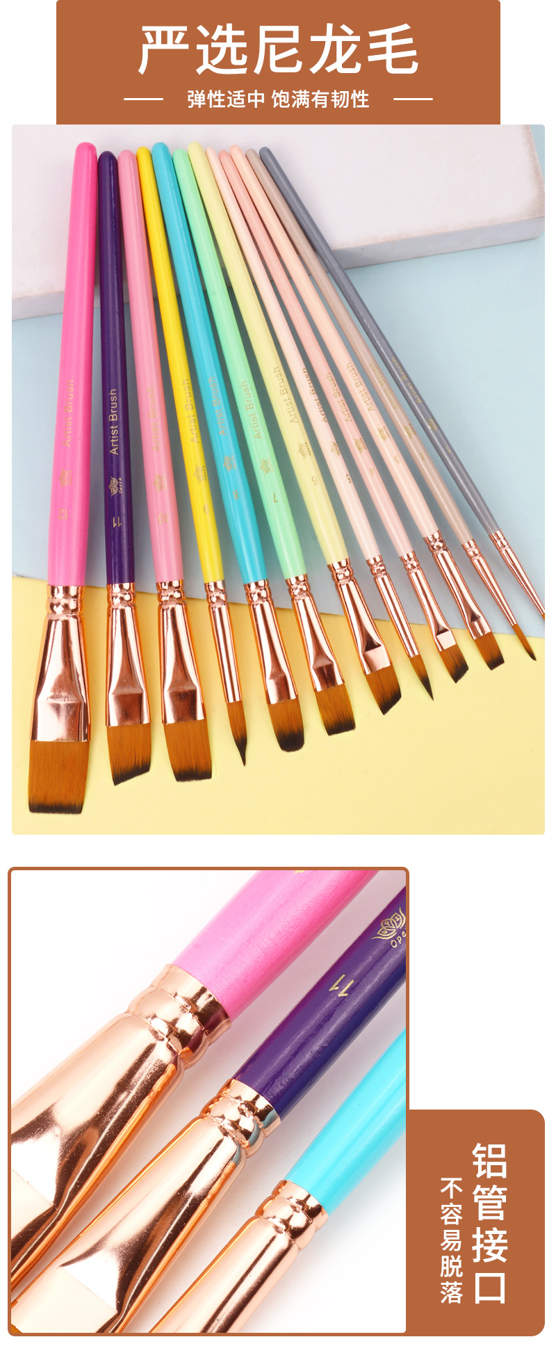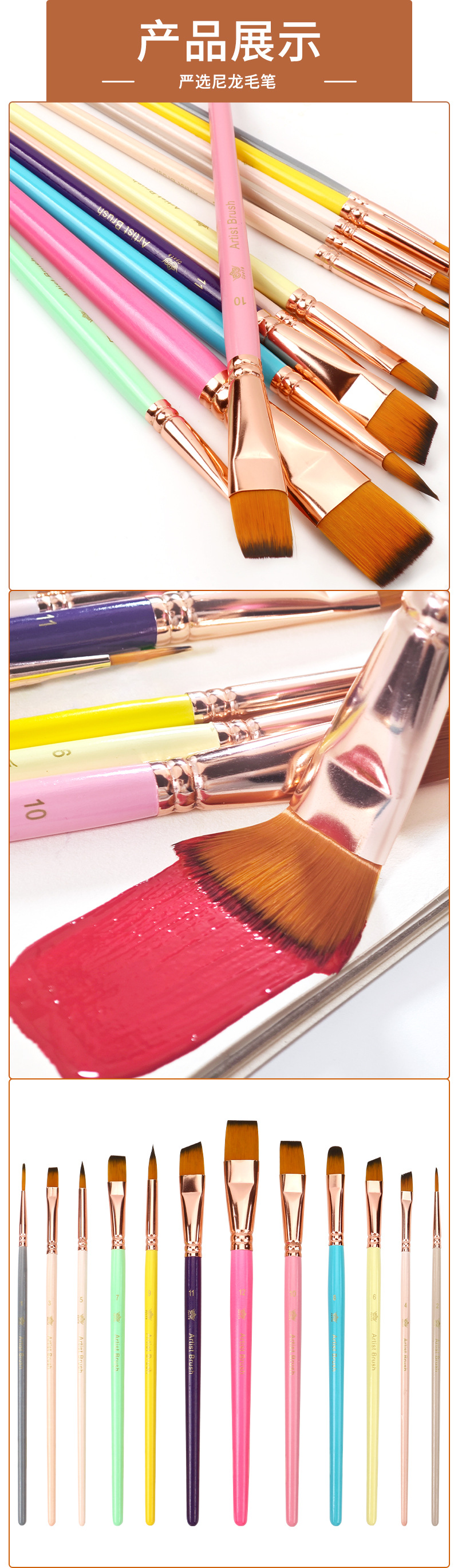 Номер товара Colored nylon 9 paintbrushes