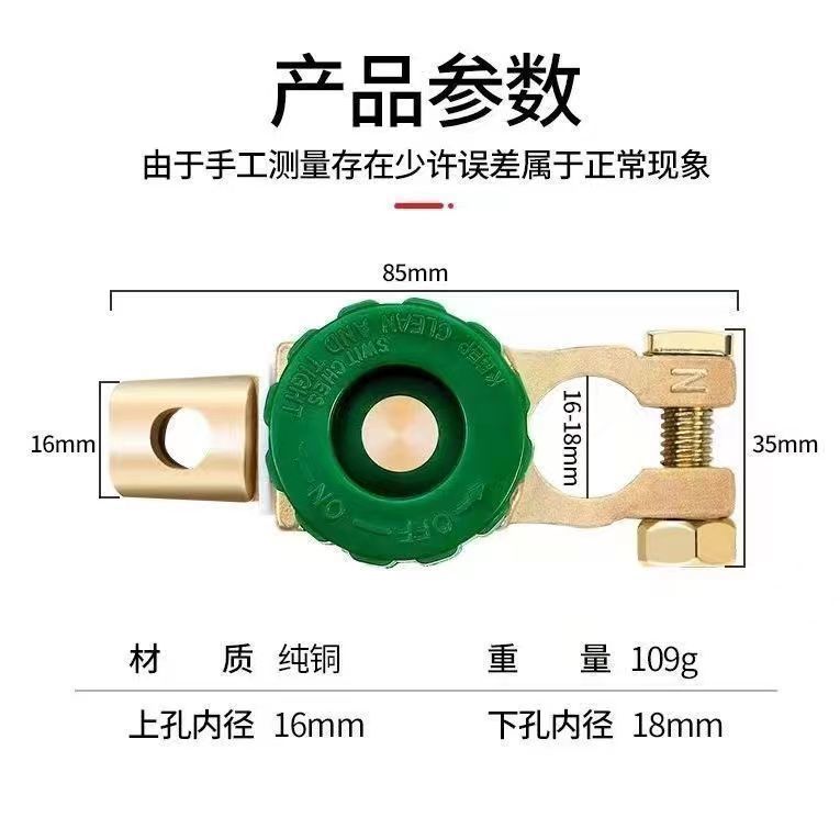 Выключатель отключения аккумулятора для автомобиля, зажим для клеммы из чистой меди, зажим для силовой клеммы