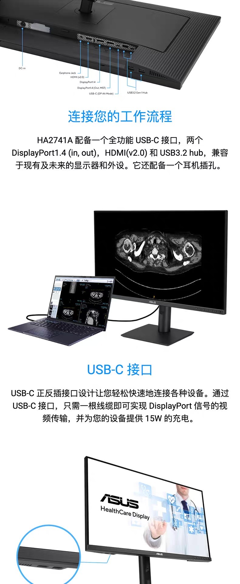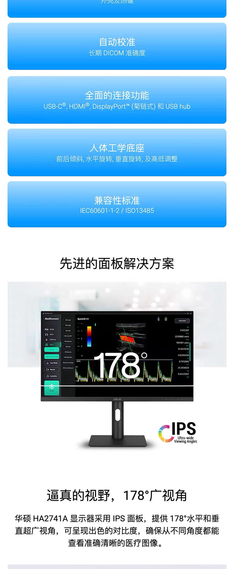 Ha2741A 27 дюймов Медицинский дисплей IPS 2K Dicom предустановка Автоматическая коррекция Daisy Chain