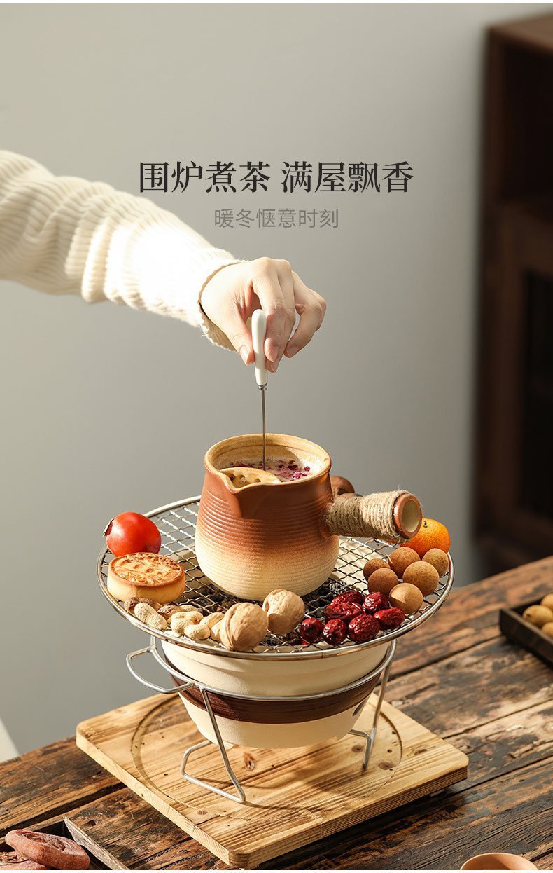 Набор для заваривания чая с печкой, чайник, домашние аксессуары, керамический чайник для молочного чая, чайник, угольная печь, набор для жарки молока