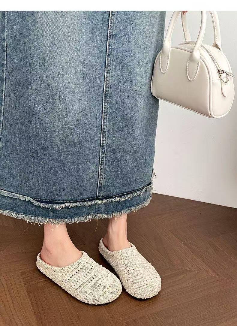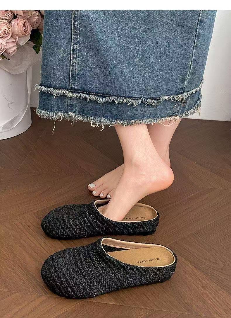 Мюли закрытые носки в французском стиле для женщин, полые дышащие полусапожки для женщин, летние уличные мюли с толстой подошвой