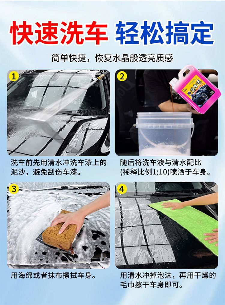 Жидкость для мойки автомобилей, высокопенный универсальный очиститель, удаление загрязнений и полировка, специальное чистящее средство, водяной воск, не повреждающий лакокрасочное покрытие автомобиля