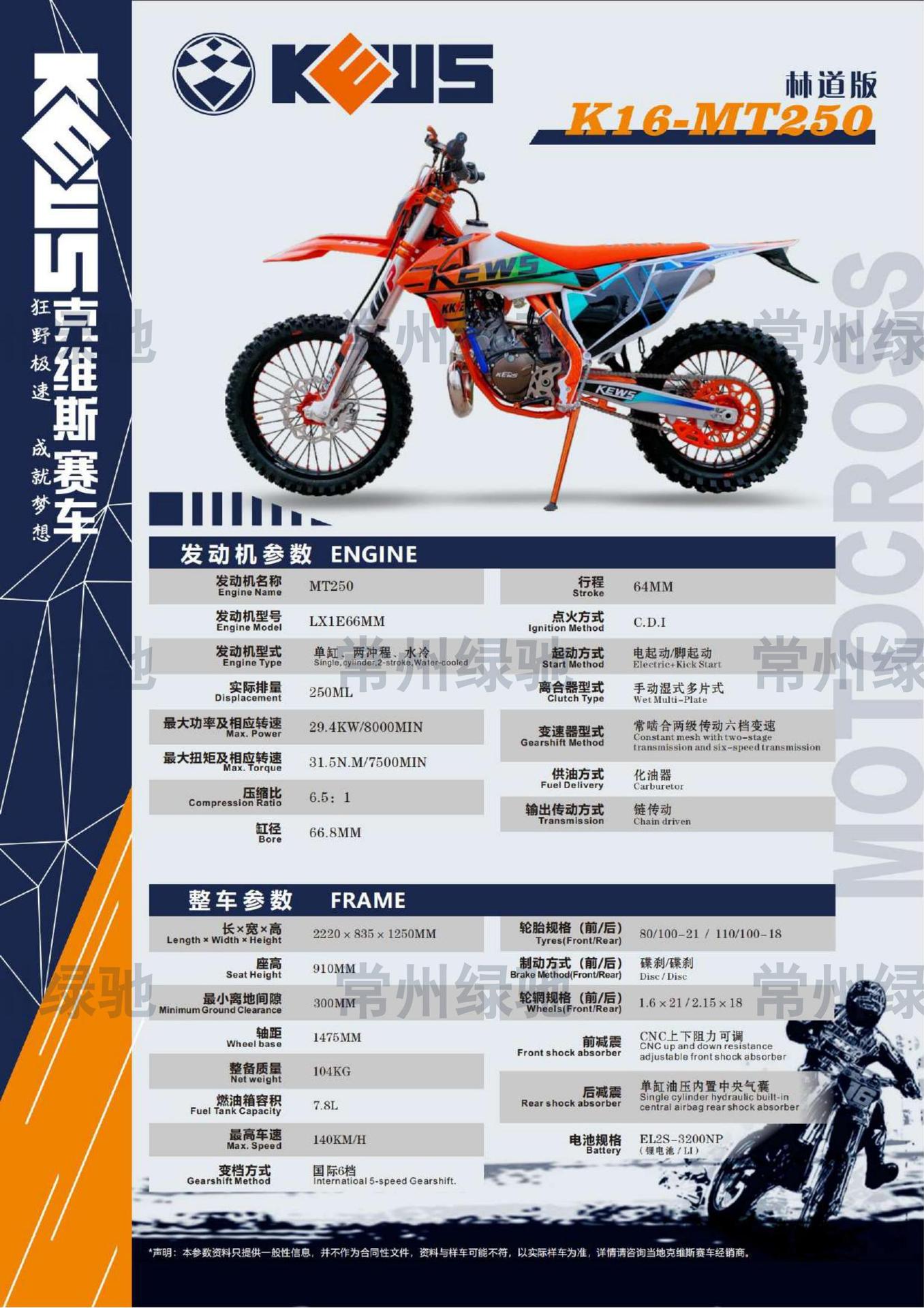 Кроссовый мотоцикл Kews K16Nb300, четырехтактный, гоночная версия для трейлов