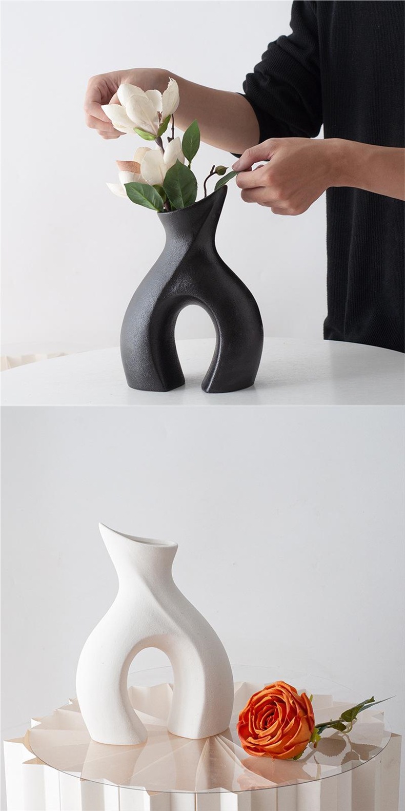 Скандинавская простая черно-белая керамическая ваза для гостиной для сухих цветочных композиций домашние аксессуары геометрические абстрактные художественные украшения