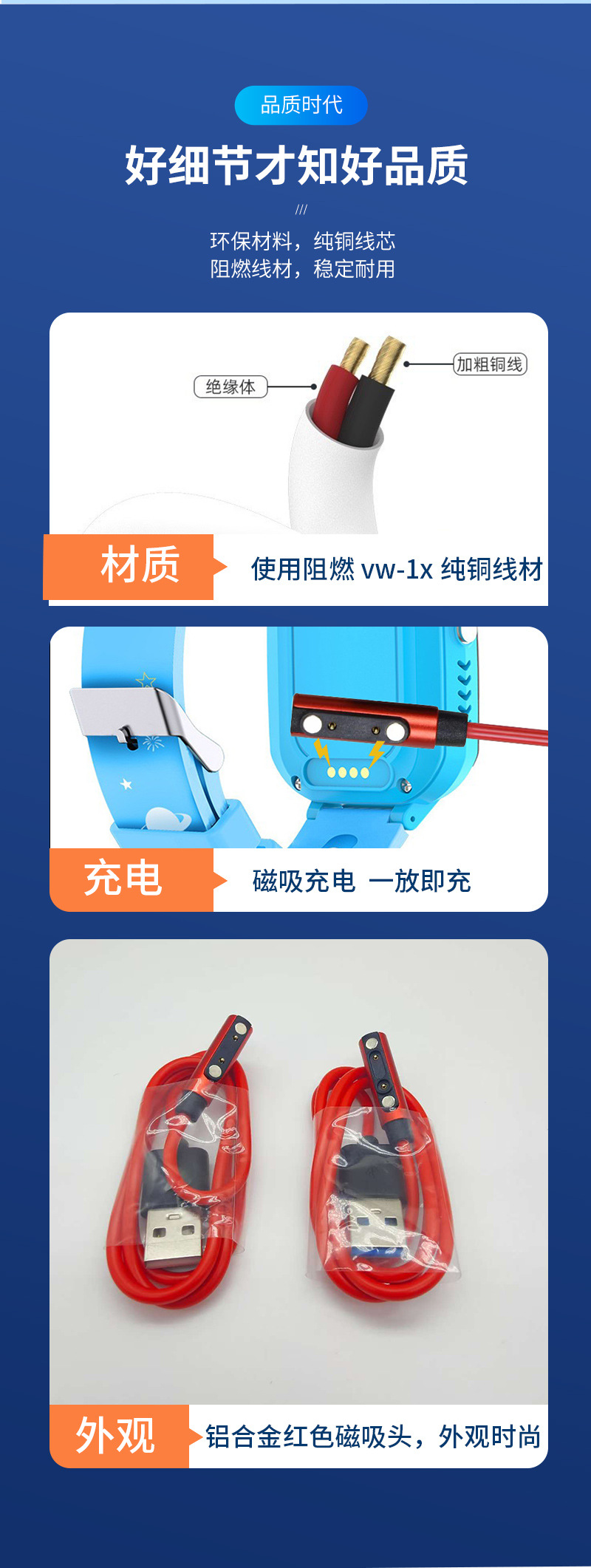 Подходит для зарядного устройства Lenovo Kidsren's Phone Watch Laiku Kidsren's Watch браслет универсальный магнитный провод 7.62mm