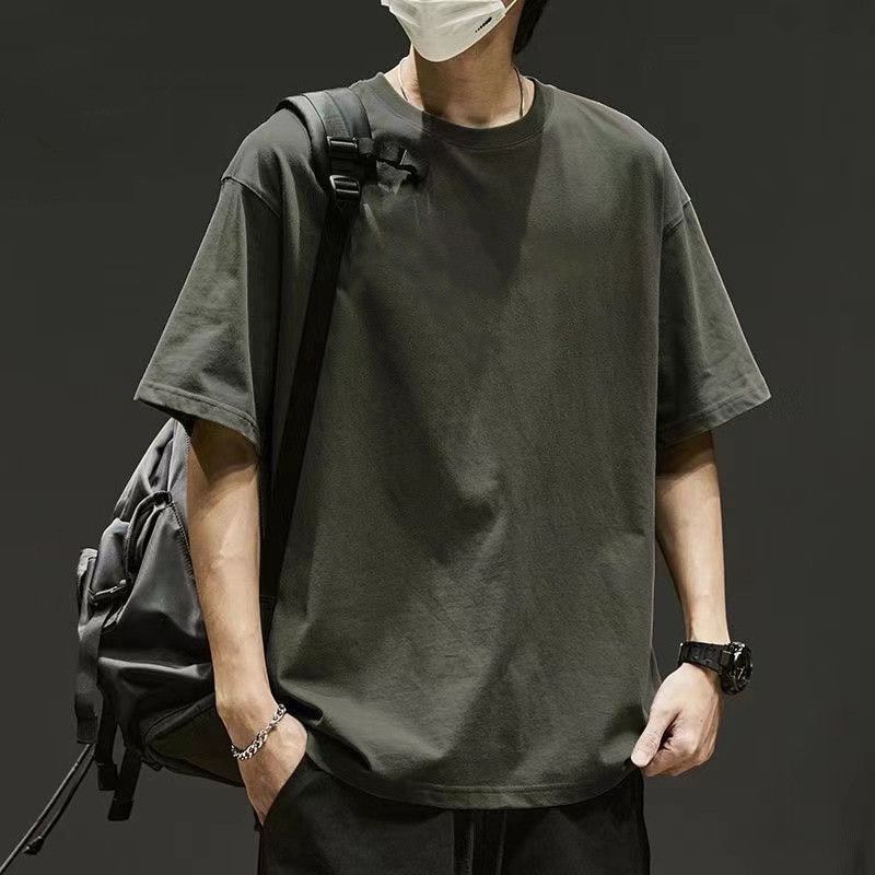 2025 летняя новая тяжелая футболка из чистого хлопка с коротким рукавом однотонная свободная универсальная простая модная базовая рубашка