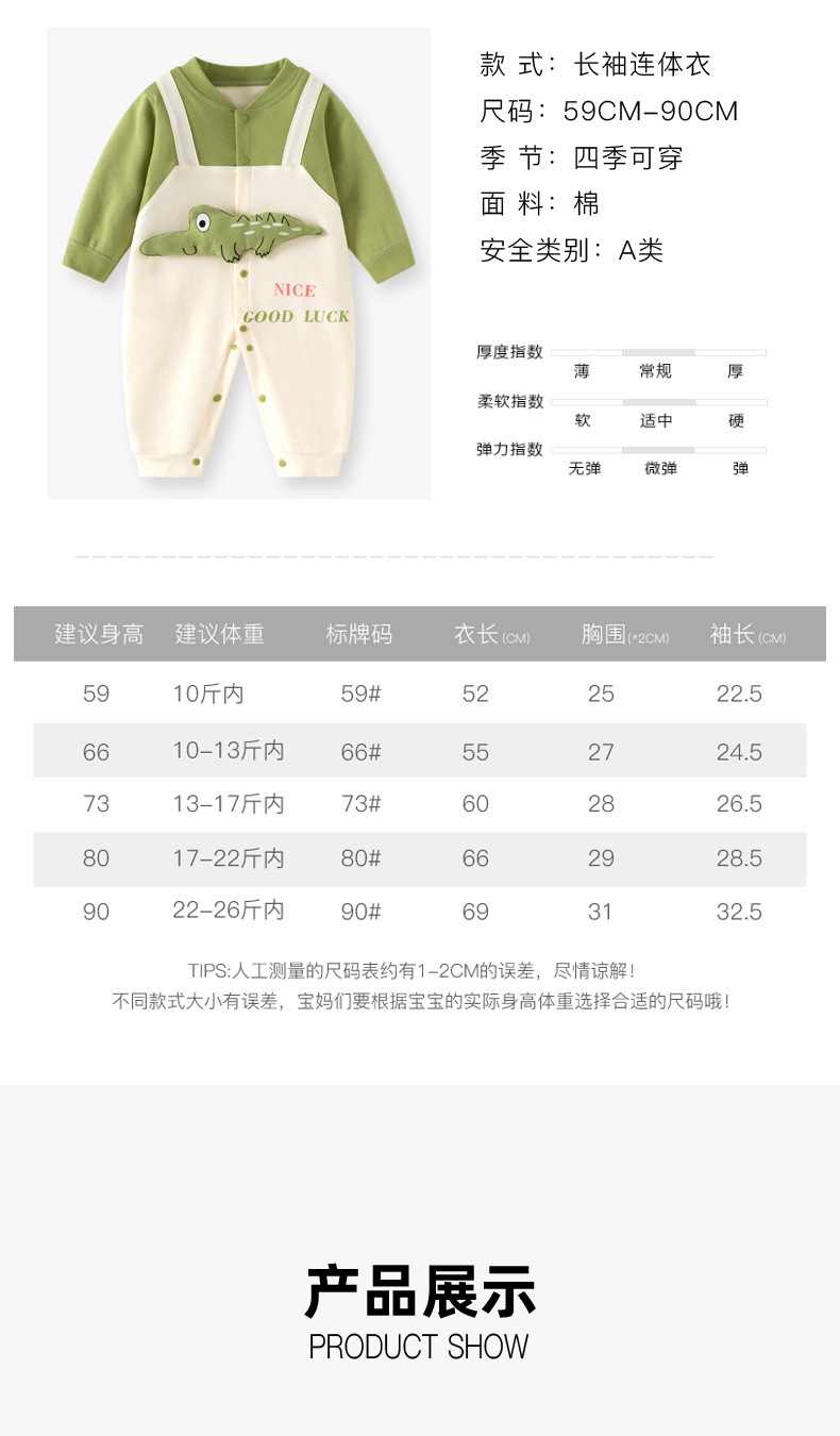 ![]() | Long sleeve little cute crocodile | 73CM | 1шт: ¥26.50, 50шт: ¥26.00, 100шт: ¥25.50 | 295 | 6016471254021 | |
