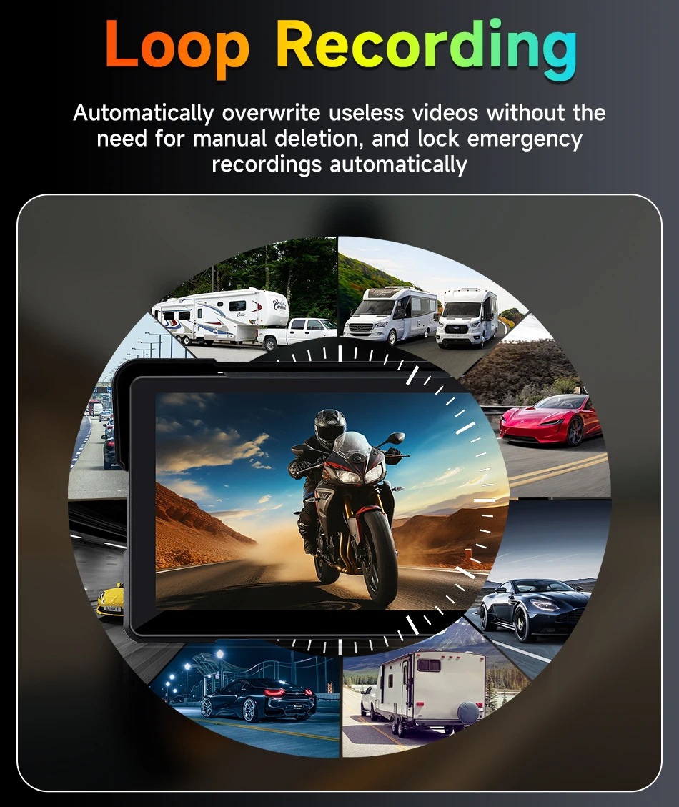 这款摩托车卡布机采用比5英寸屏幕大得多的7英寸IPS显示屏,分辨率为1024x600;170°全视角高对比度,改善色彩效果,提供超清晰生动的画质。