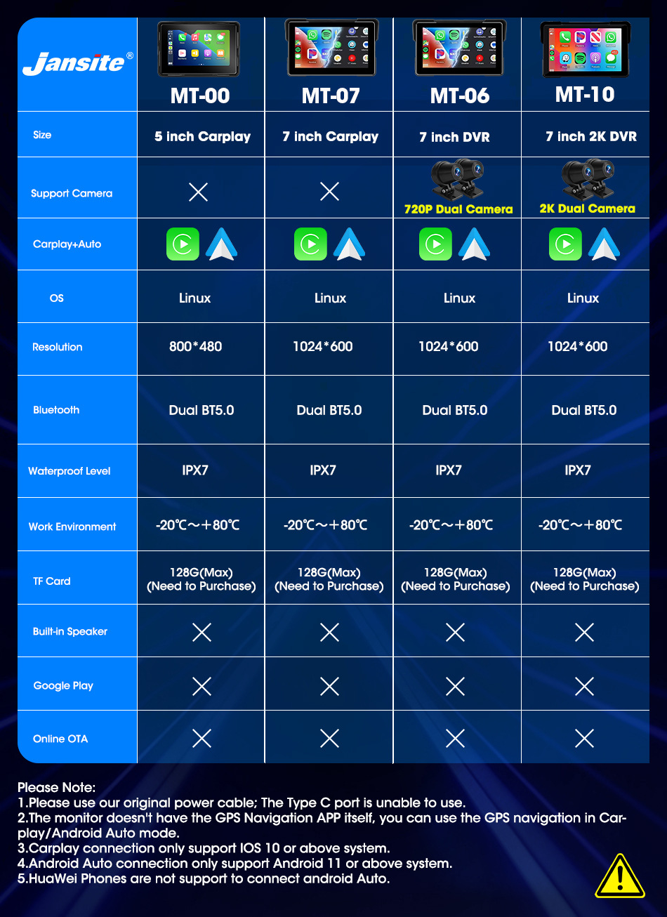 3. 5寸carplay和7寸carplay版本不含摄像头,如果您需要摄像头,请购买7寸DVR或7寸2K DVR版本。