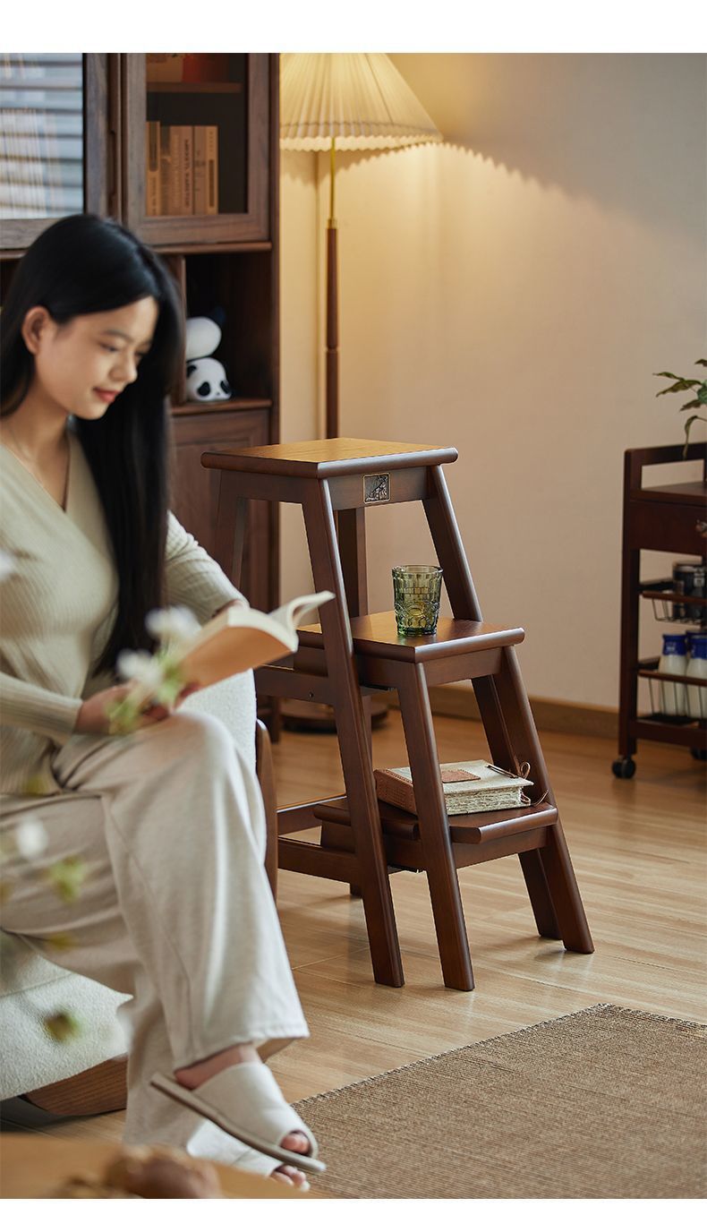Деревянная Трехступенчатая Лестница Стул Внутренний Цветочный Стенд Лестница Двухфункциональная Складная Телескопическая Лестница