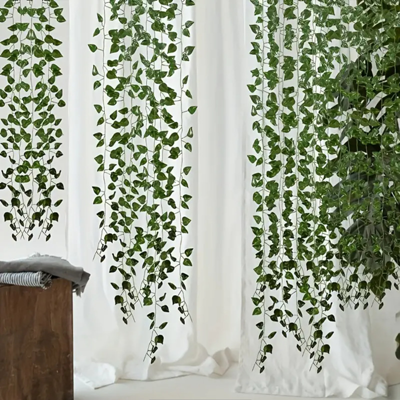 Искусственная вьющаяся лоза с пластиковыми листьями для декора дома