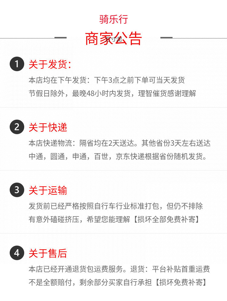 ![]() | ⊙(single speed/black and red model) | 20inch suitable for height 128cm-145cm | ¥274.24 / ≈ 3 336 ₽ | 100000 | 6063140502114 | |