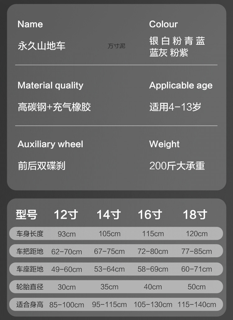 ![]() | ⊙[disc brake variable speed bright silver model] | 18inch suitable for height 110cm-135cm | ¥322.84 / ≈ 3 927 ₽ | 100000 | 6063140502155 | |