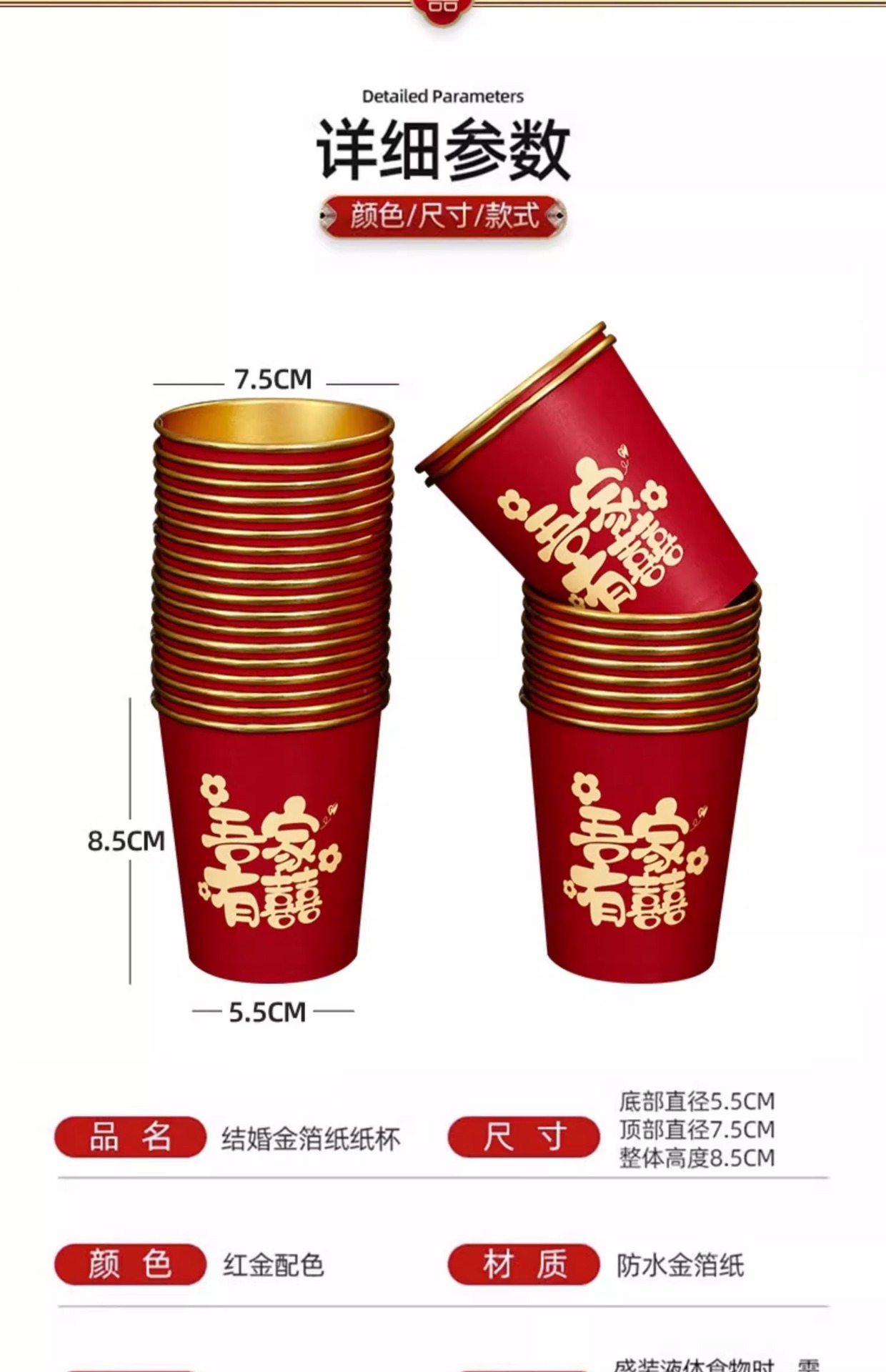 Одноразовая бумажная чашка для свадьбы, свадебные принадлежности, золотая фольга