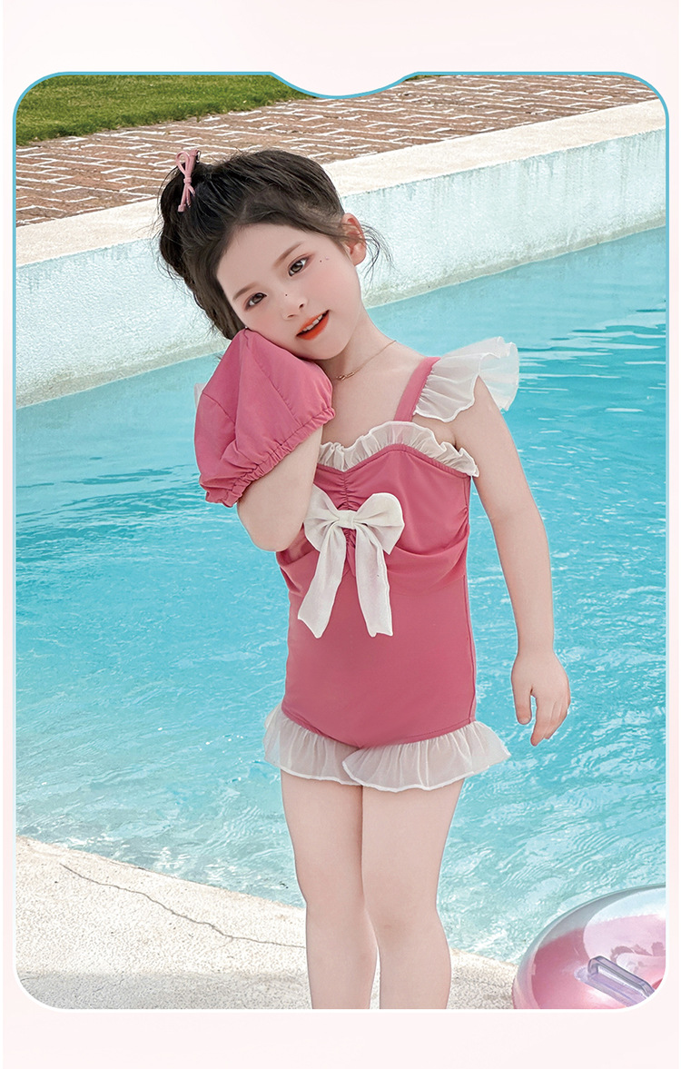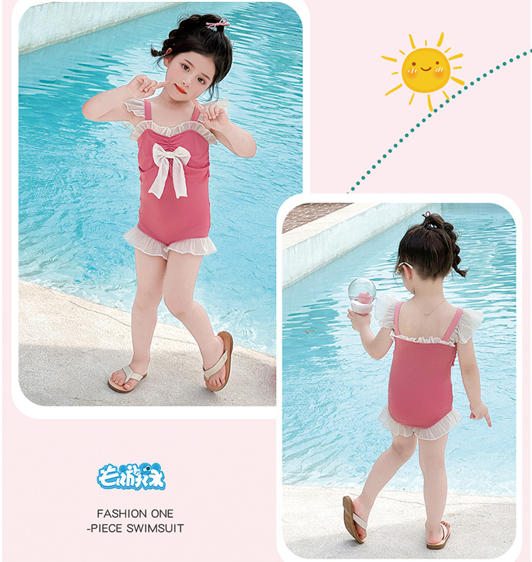 Купальник для девочек с бантом спереди, новый модный одноразовый купальник для девочек