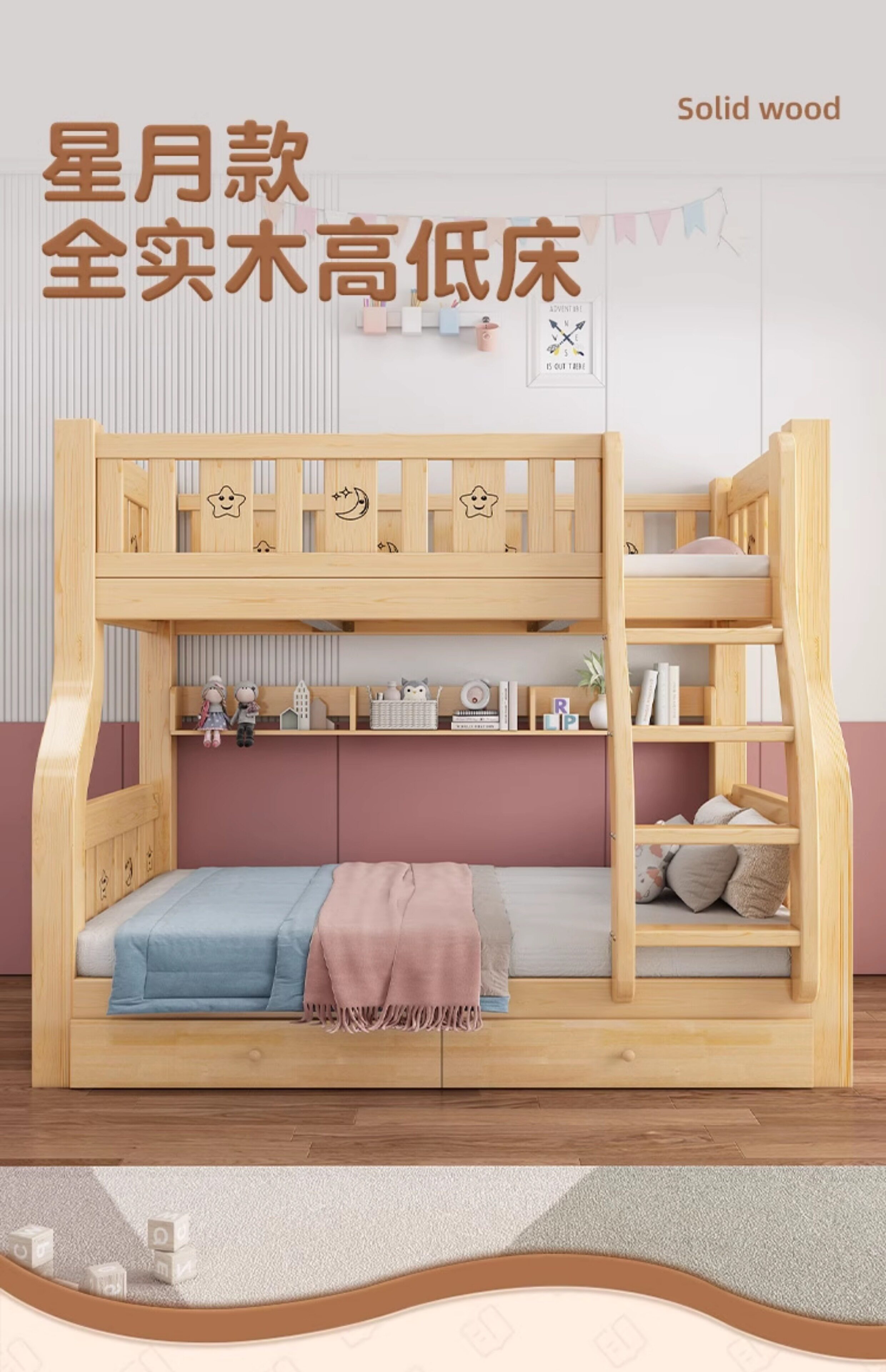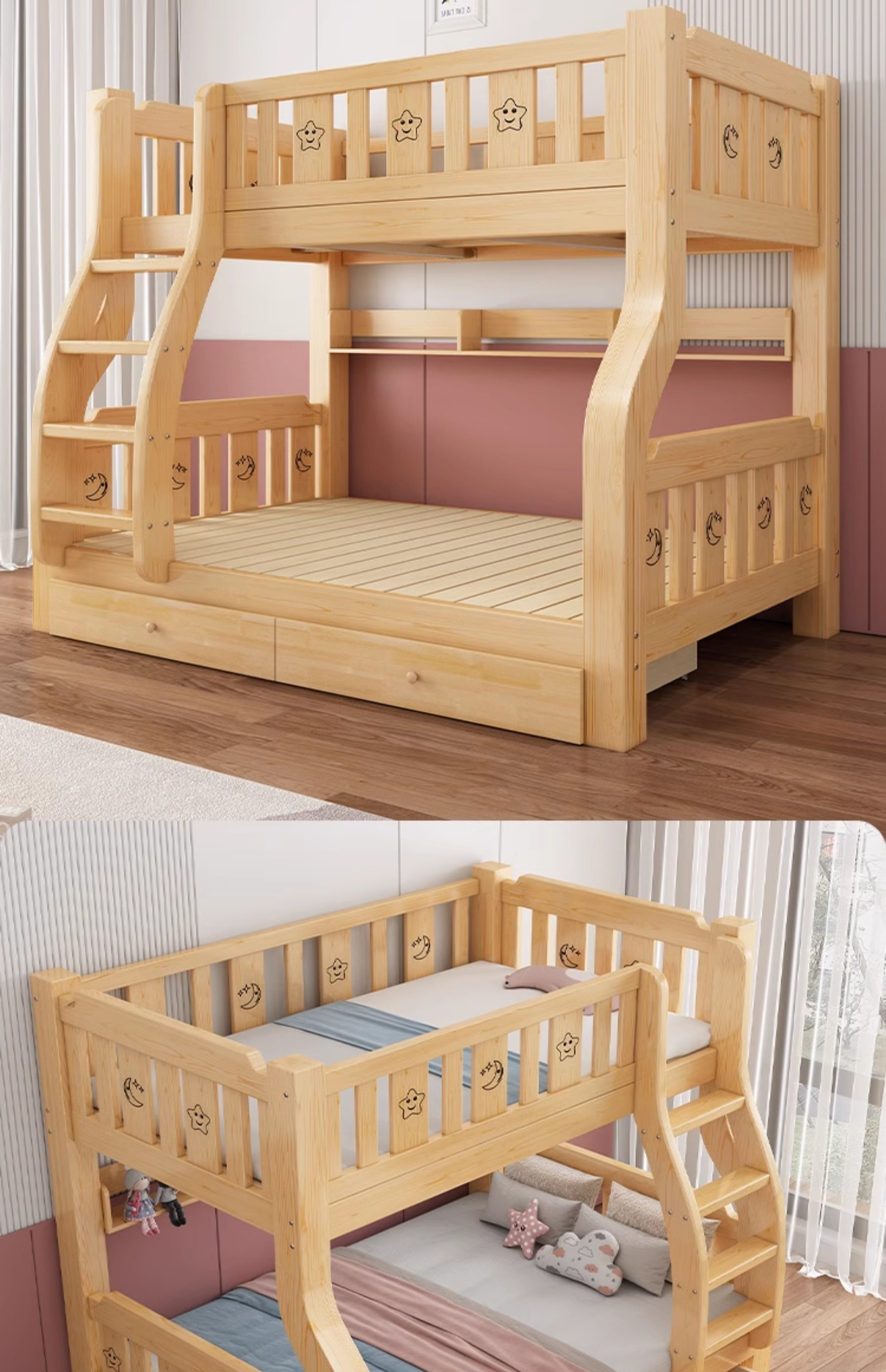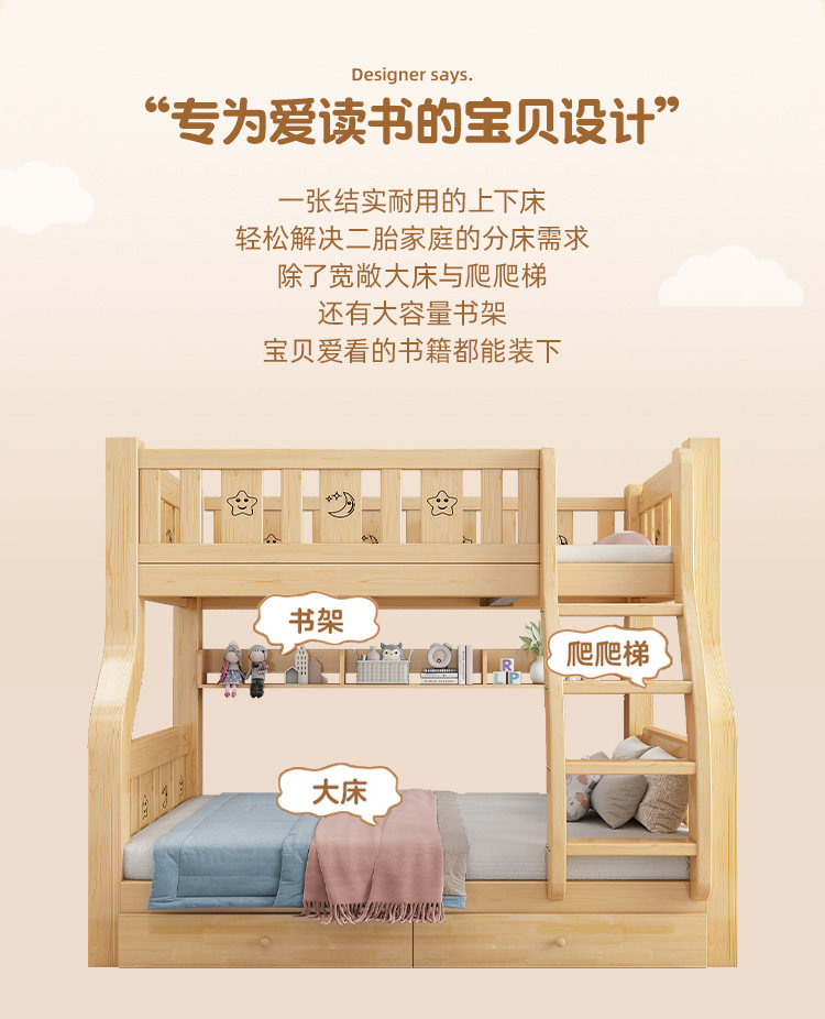 Деревянная двухъярусная кровать, для маленьких квартир, детская кровать, верхняя и нижняя кровать