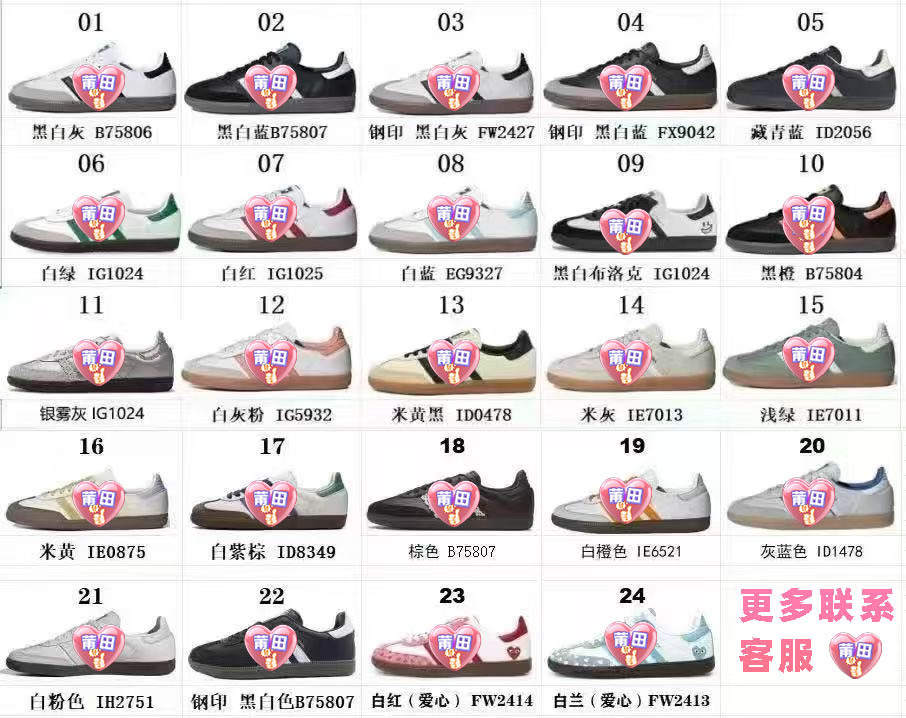 更多款式请咨询客服,当天18点前拍下正常当天发货!我们提供更多新款性价比高品质好的莆田纯原鞋小白鞋包括阿迪德训鞋Samba男鞋女鞋等千款得训鞋潮鞋~