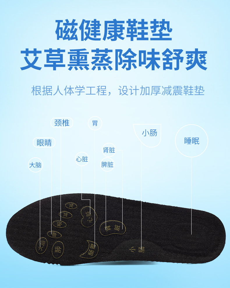 7.油上止滑鞋底 8.电脉冲按摩功能