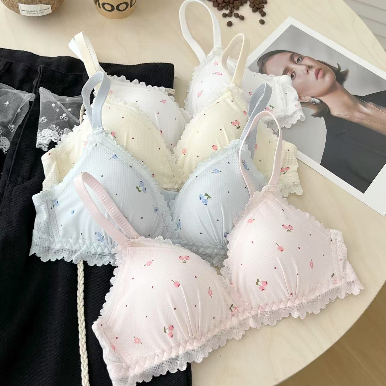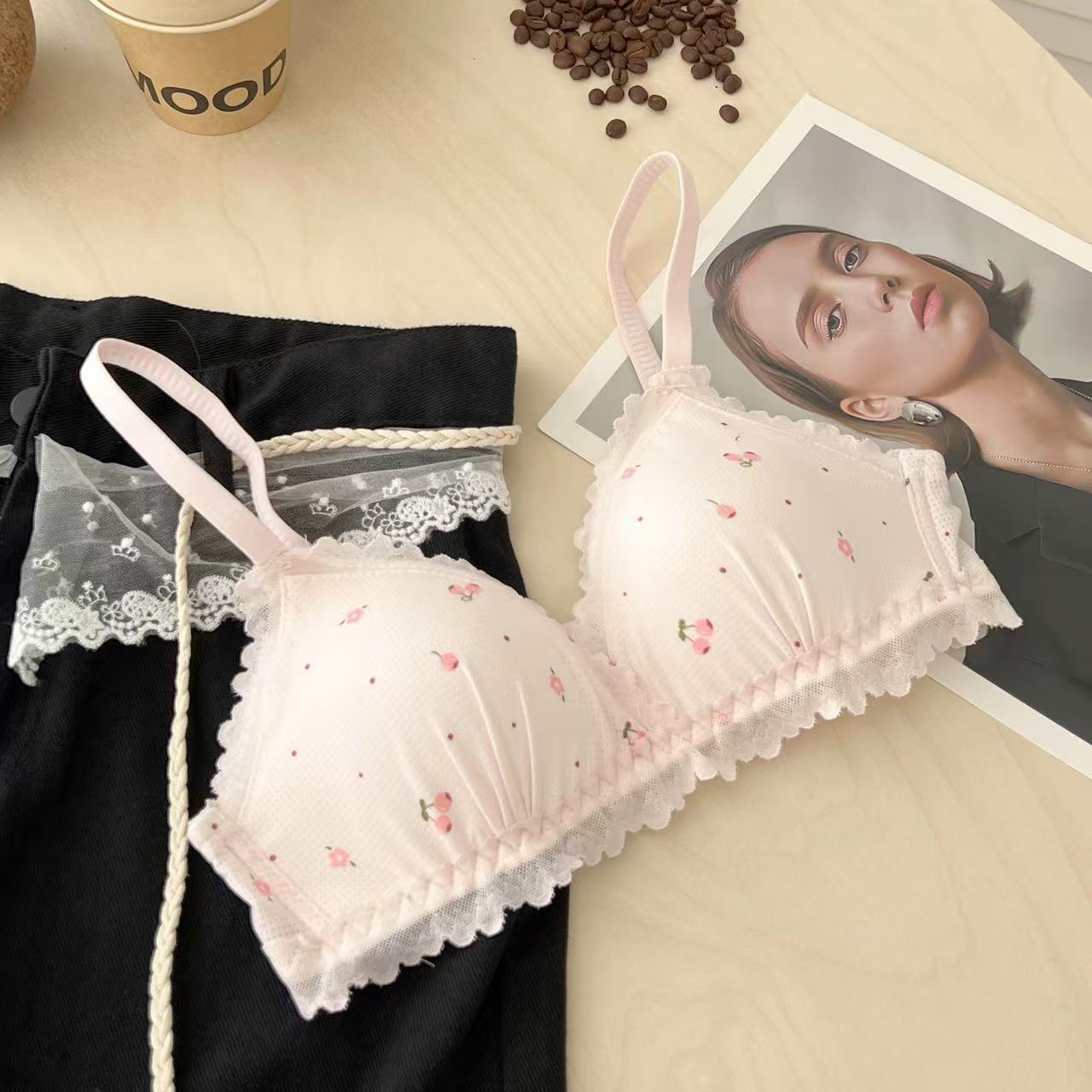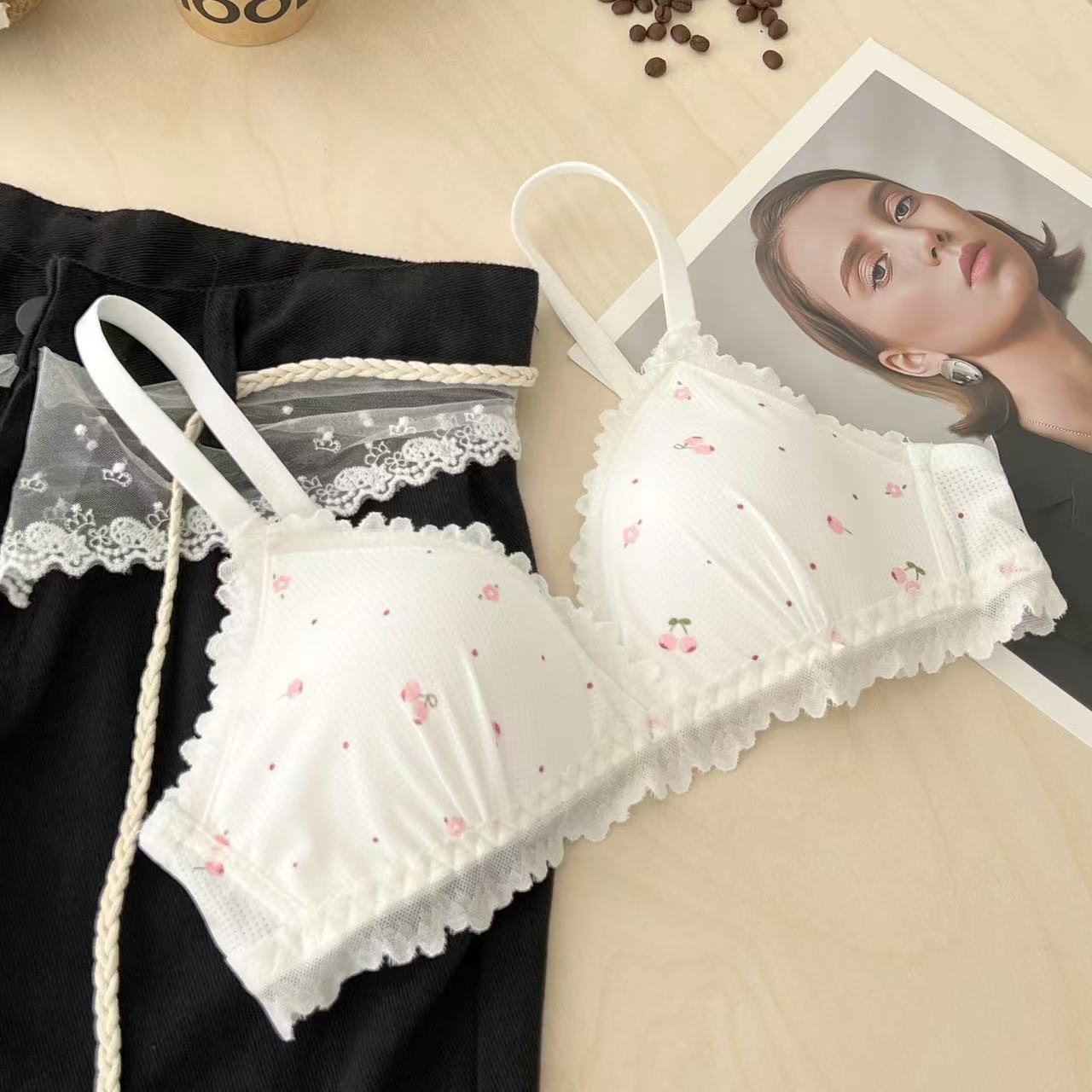 Бюстгальтер с кружевом и вишенками, тонкий, анти-обвисание, дышащий и комфортный, без проволоки
