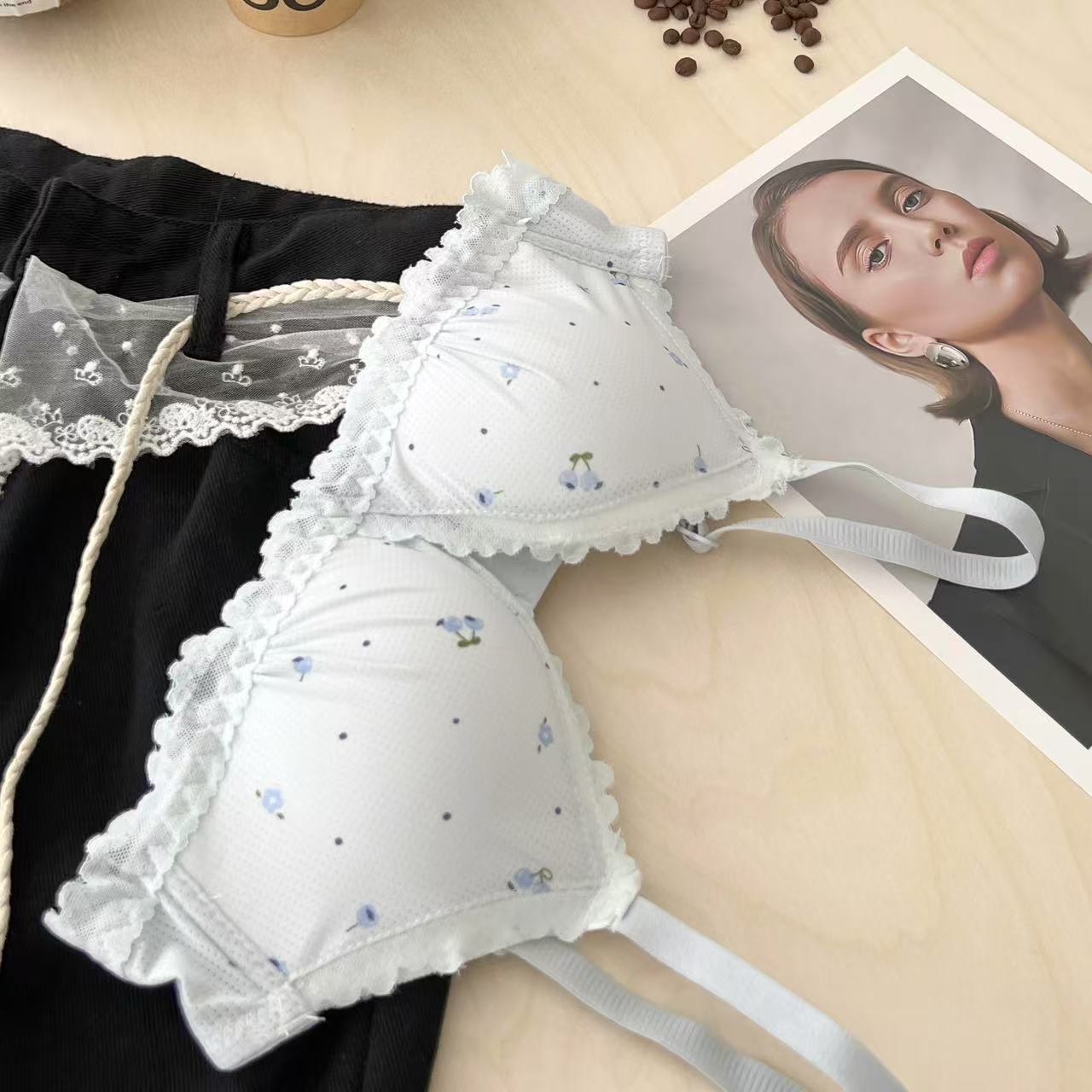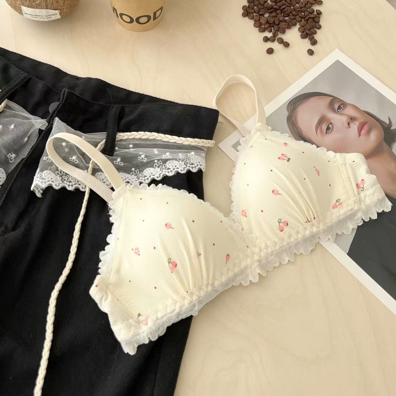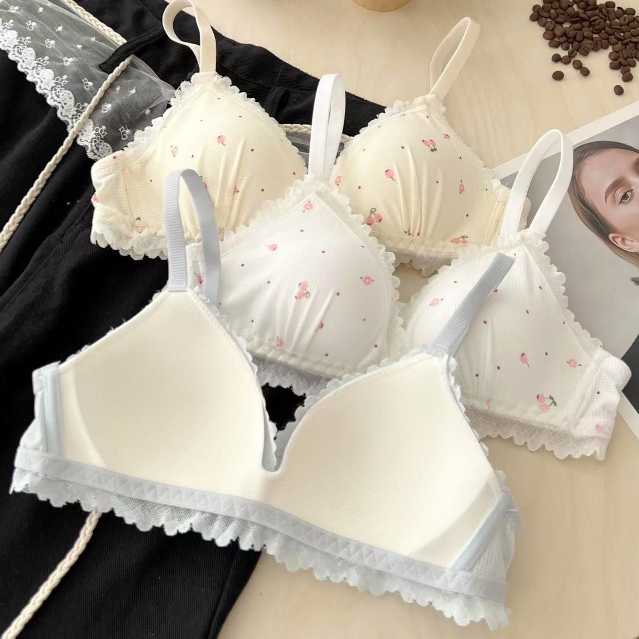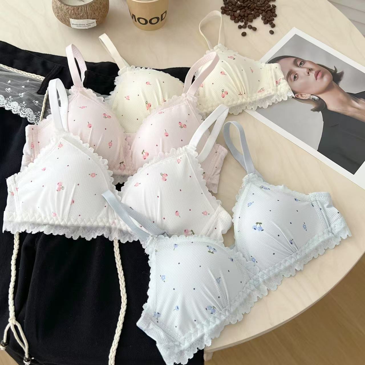 Бюстгальтер с кружевом и вишенками, тонкий, анти-обвисание, дышащий и комфортный, без проволоки