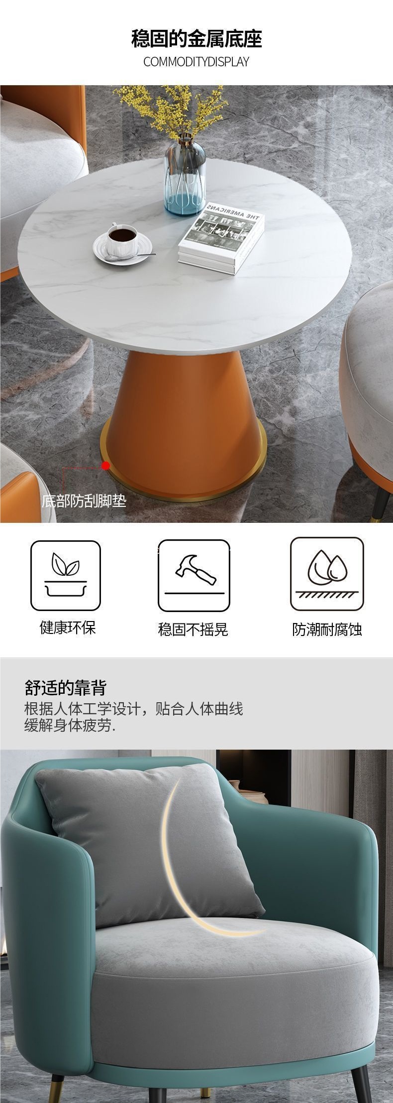 Простой и легкий роскошный комплект из одного кресла и кофейного столика, зона отдыха в отеле, стол для переговоров и стулья, прием в салоне красоты