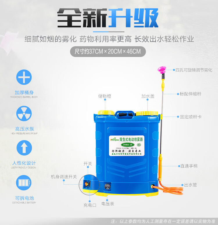 Nongbao 20L высоконапорный электрический распылитель, перезаряжаемый распылитель, распыление воды, полив цветов, дезинфекционный распылитель
