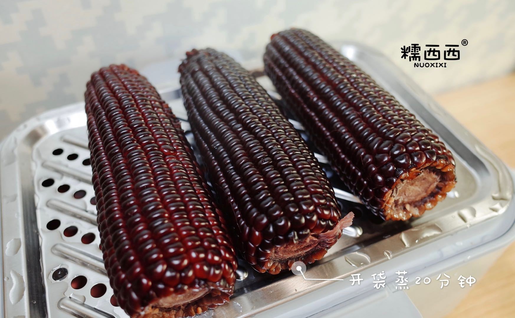 1. 收到黑玉米后,建议蒸15-20分钟,隔水蒸出来的玉米,一点儿营养都不损失。因为这样充分的阻止了玉米里面的糖分流失到煮玉米的水中,所以煮的不如蒸的甜,黑玉米有水溶性花青素,煮出一堆墨汁会吓坏顾客。