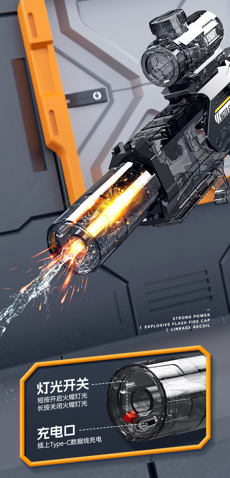 Функция Electric, Glow, Spray water, Water, Water shot, Electric water spray, Electric burst, Electric water outlet, Automatic reloading