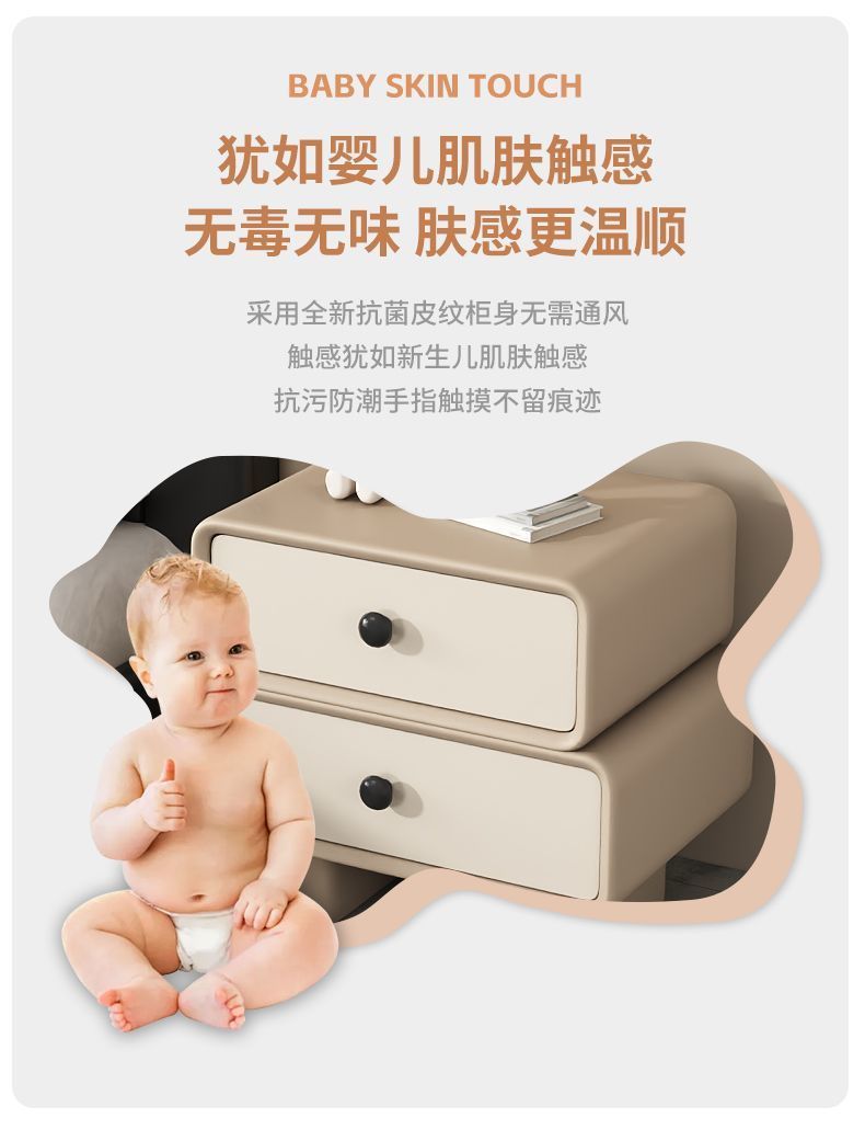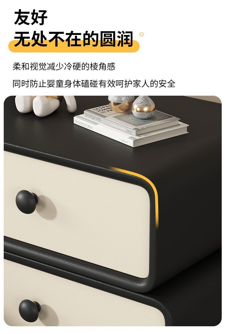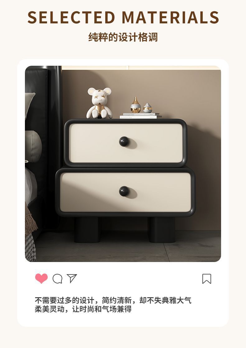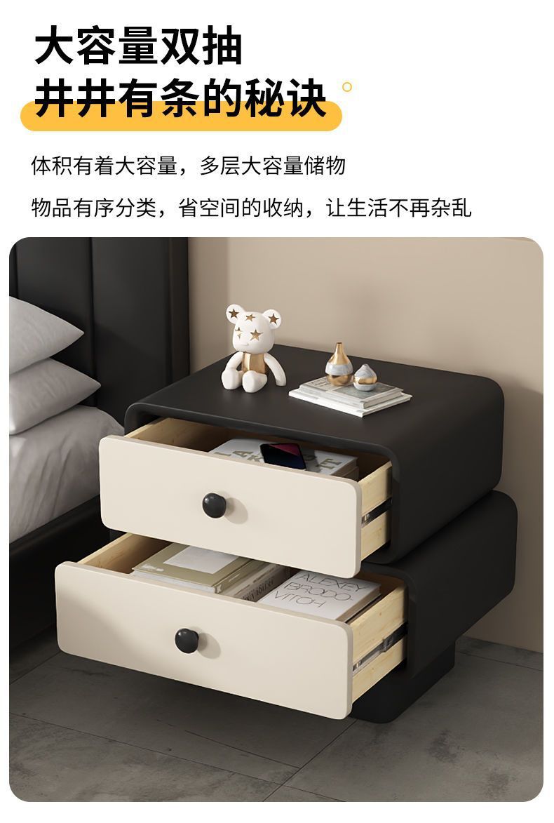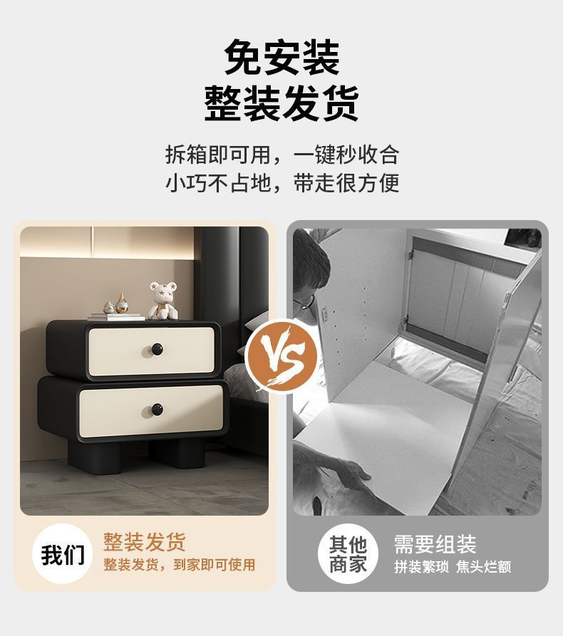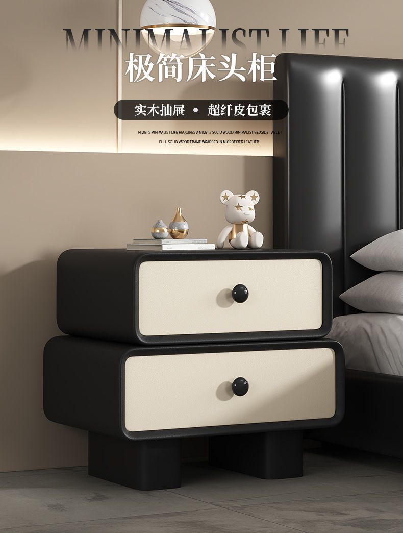 Кремовая прикроватная тумбочка без установки, простой современный кожаный ретро шкаф, массивное дерево для дома и детской спальни