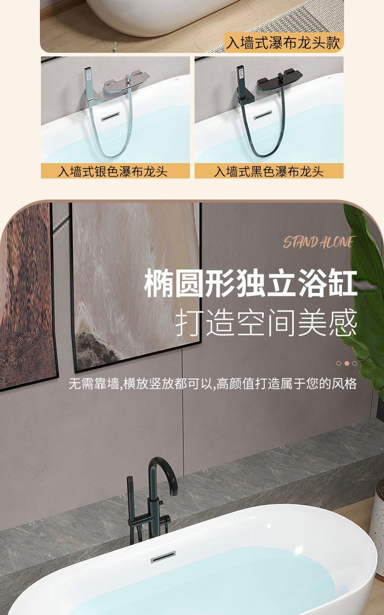 ![]() | Bathtub + black wall-mounted waterfall faucet | 150cm long, 70cm wide, 60cm high | ¥1488.4 / ≈ 18 104 ₽ | 600 | 6023914583870 | |