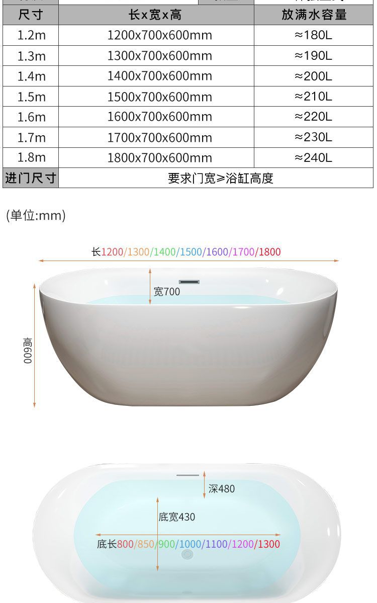 ![]() | Bathtub + black floor-standing faucet | 180cm long, 70cm wide, 60cm high | ¥1537.2 / ≈ 18 698 ₽ | 600 | 6023914583846 | |