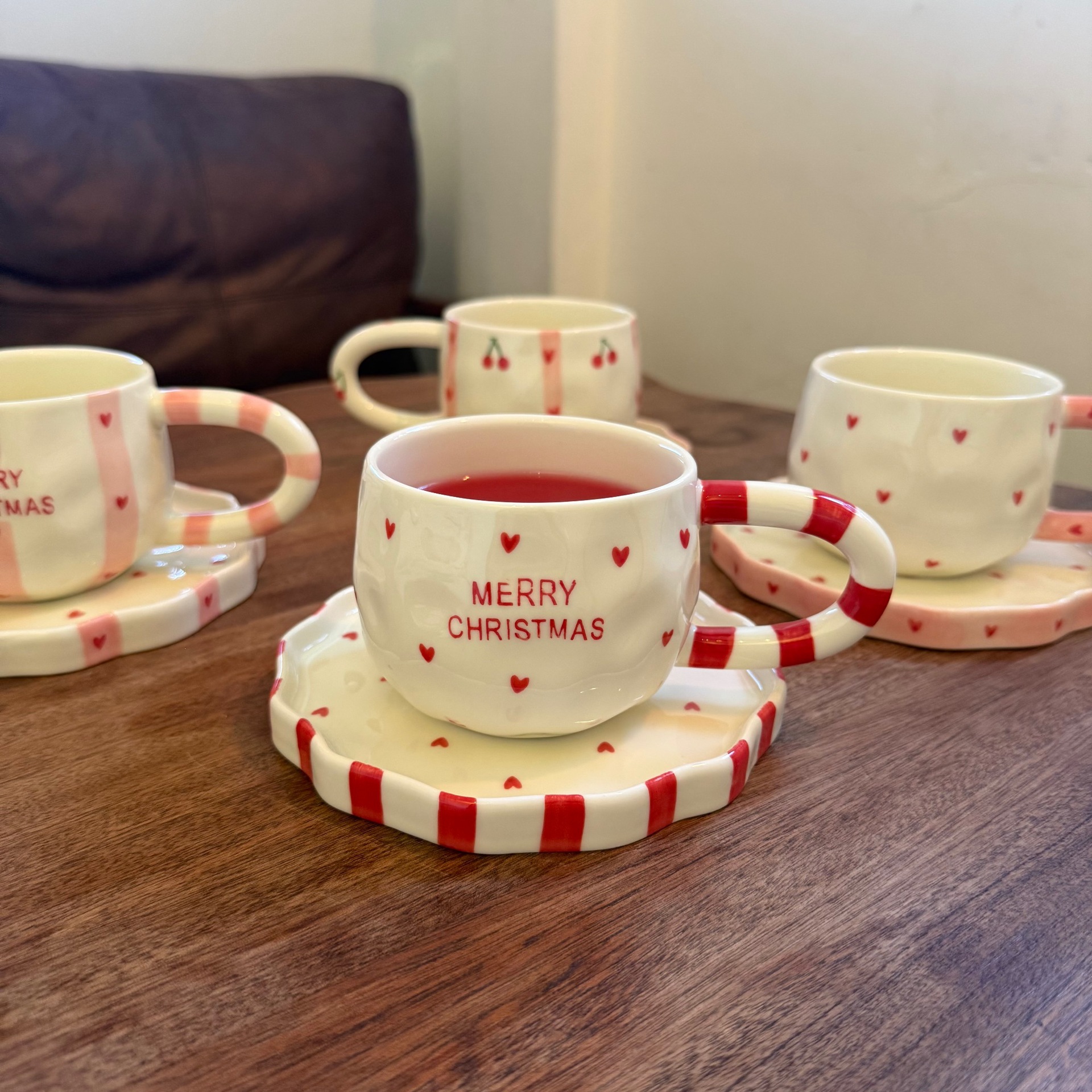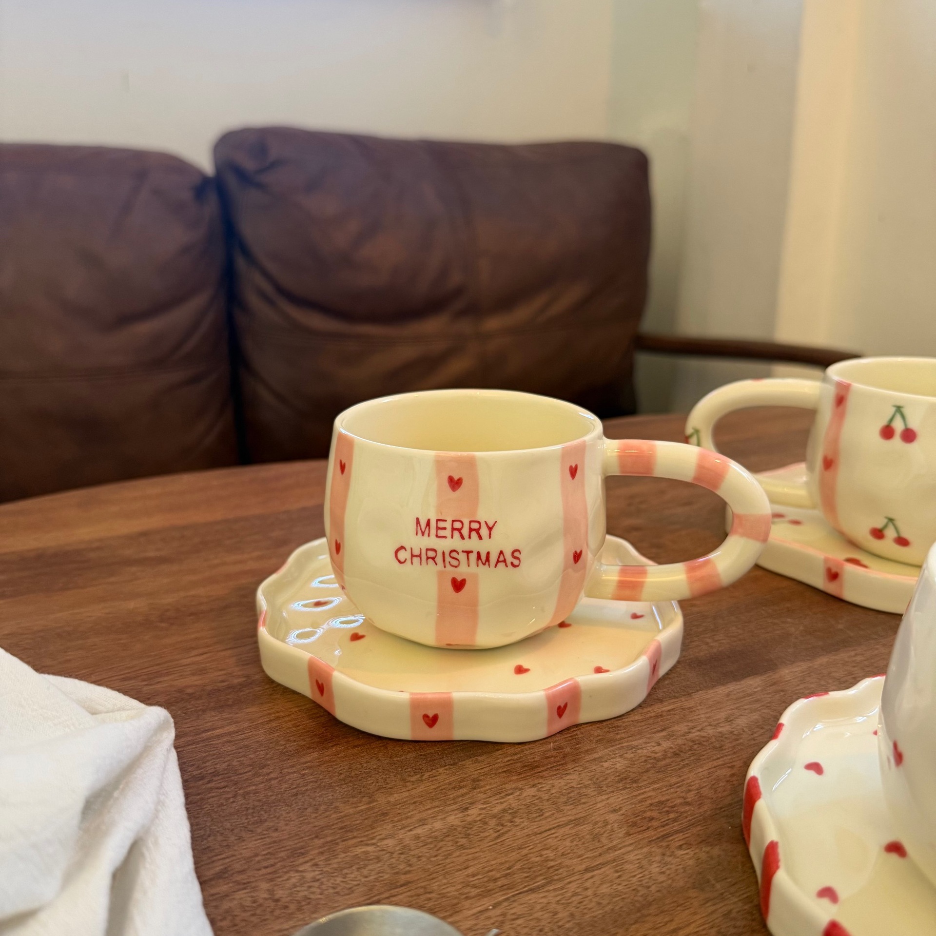 款式:纯手绘圣诞风陶瓷杯碟