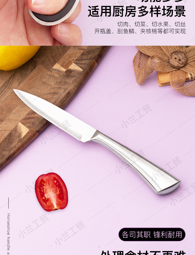 ![]() | Horseshoe handle fruit knife (welded) | ¥3.4 / ≈ 41 ₽ | 1700 | 6026465467549 | |