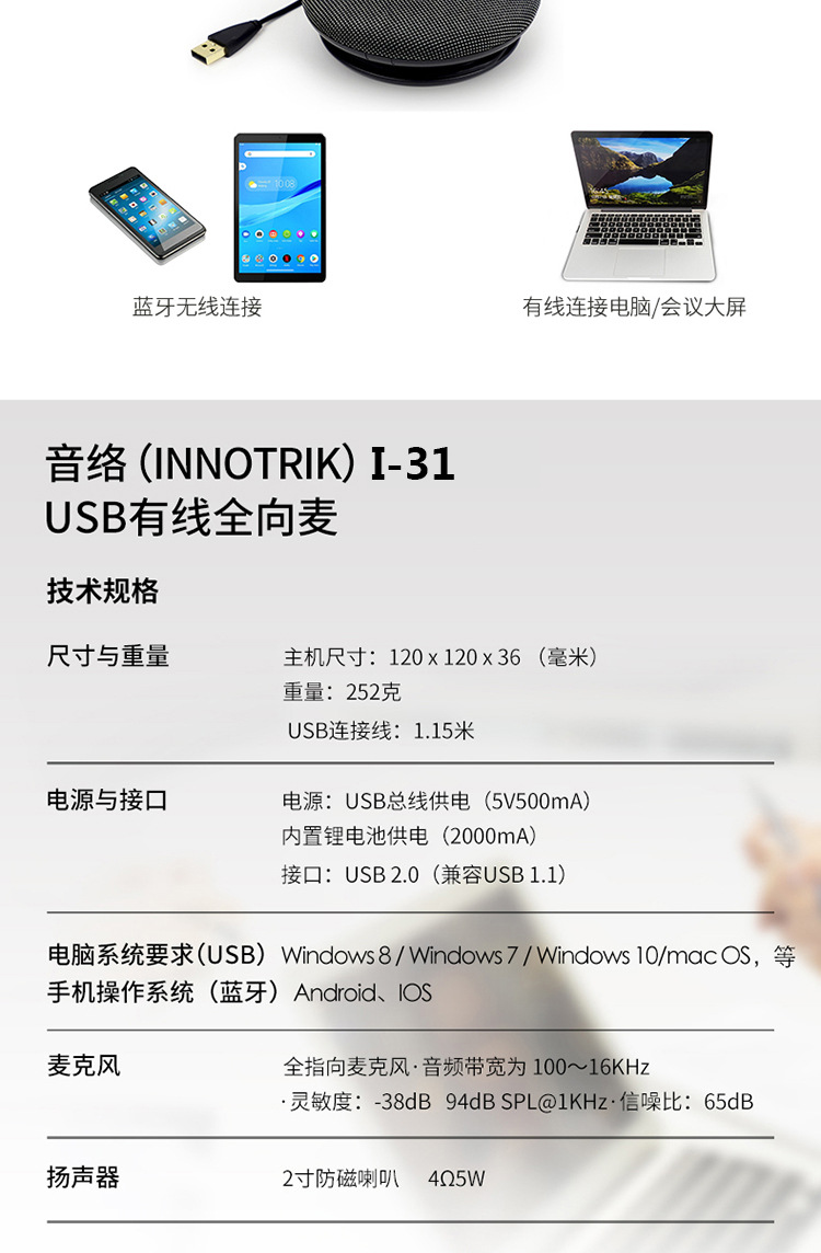 Омнинаправленный микрофон для конференций I-31/USB без драйвера