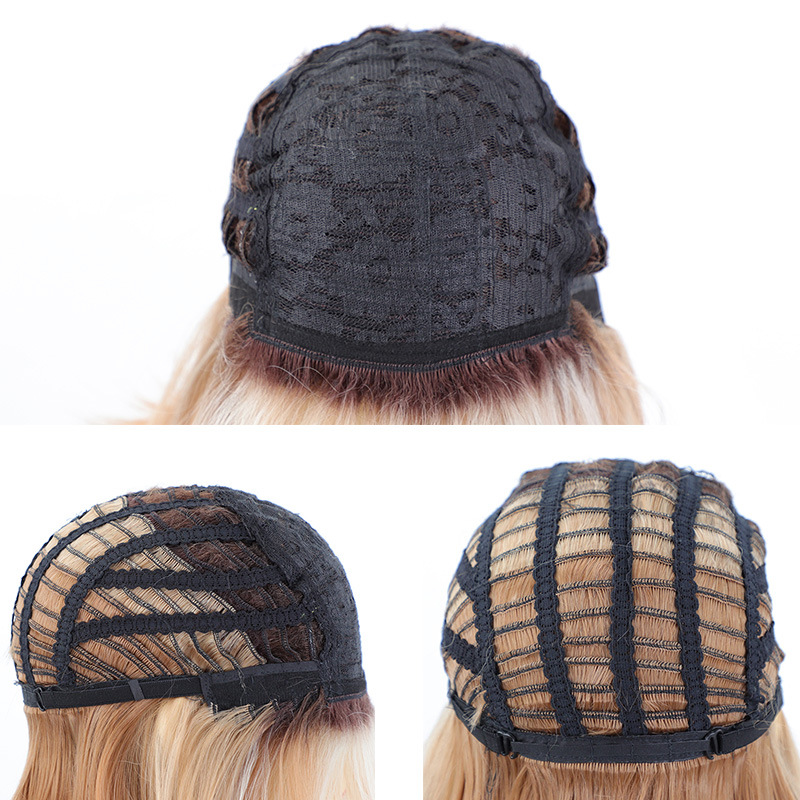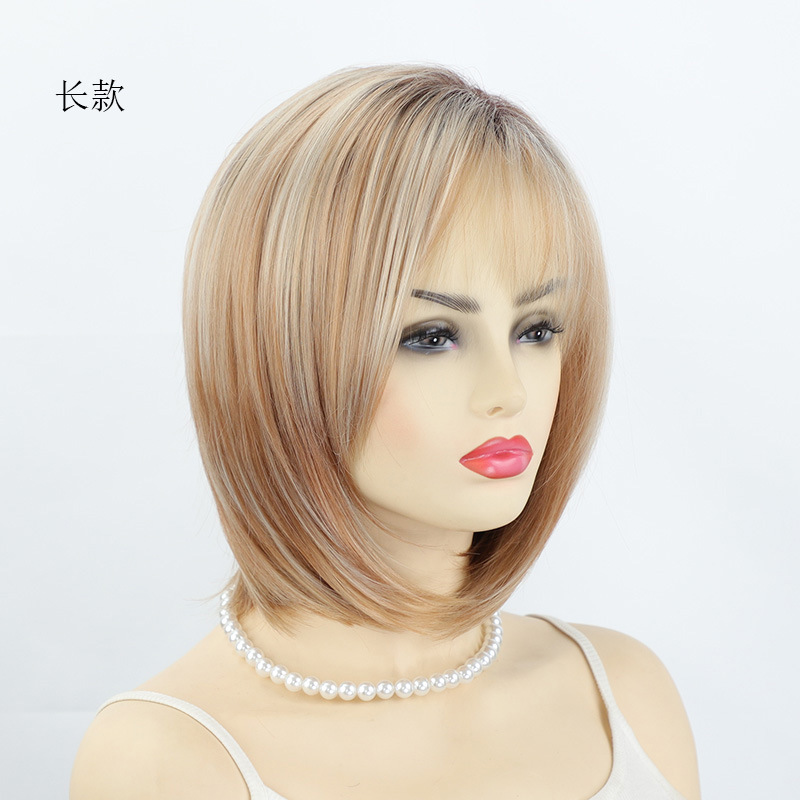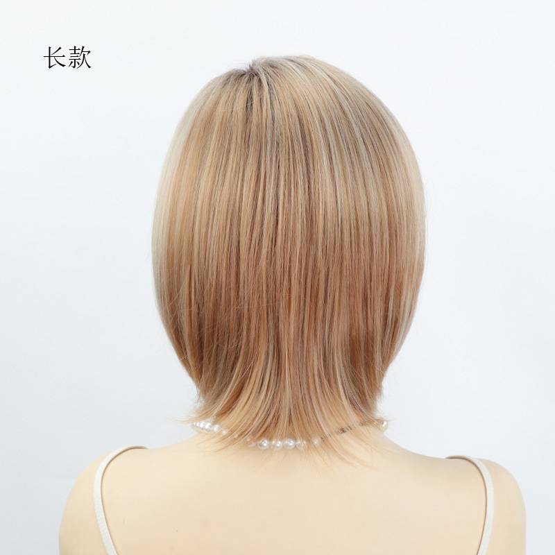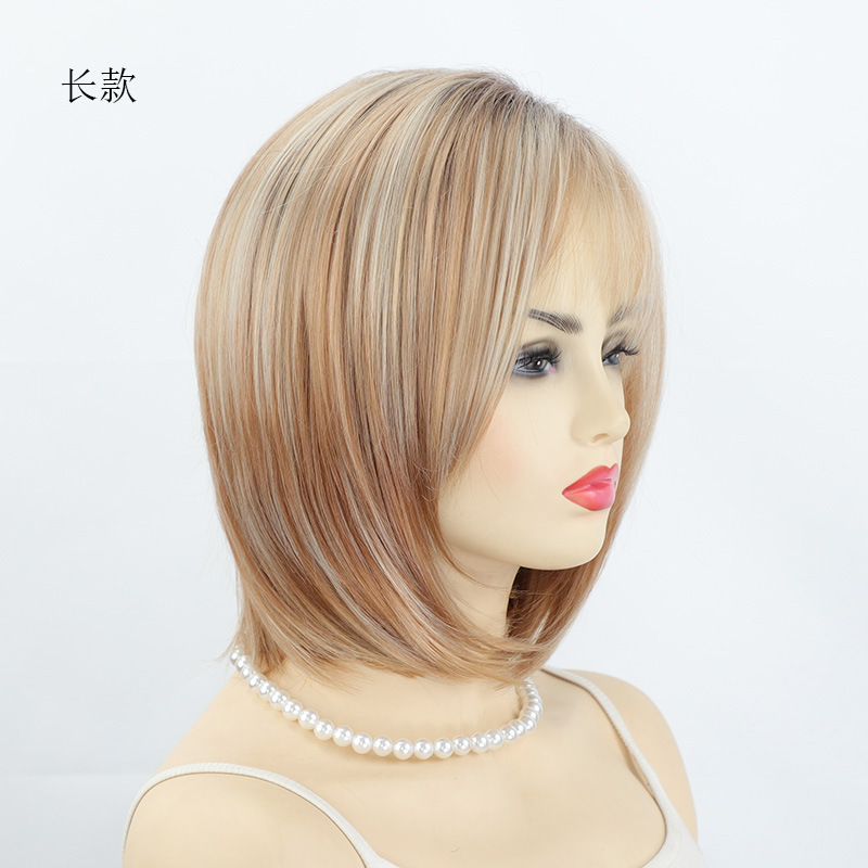 Парик нового европейского и американского стиля, градиентный коричневый с золотыми прядями, короткий прямой синтетический парик