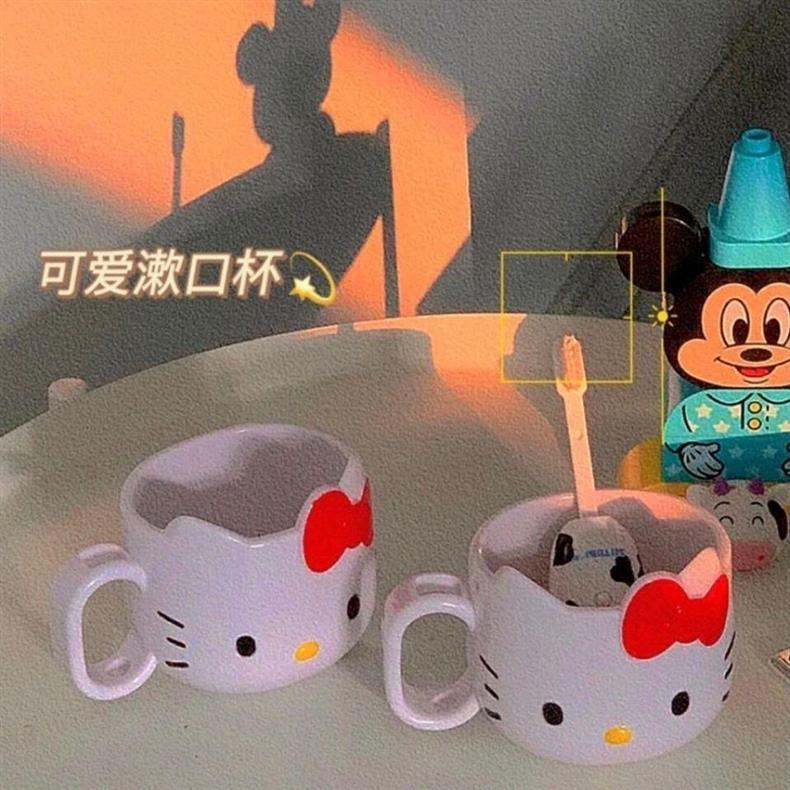 Кружка для полоскания рта Kitty Cartoon, милый стакан для девочек с сердцем, творческий стакан для чистки зубов с ручкой