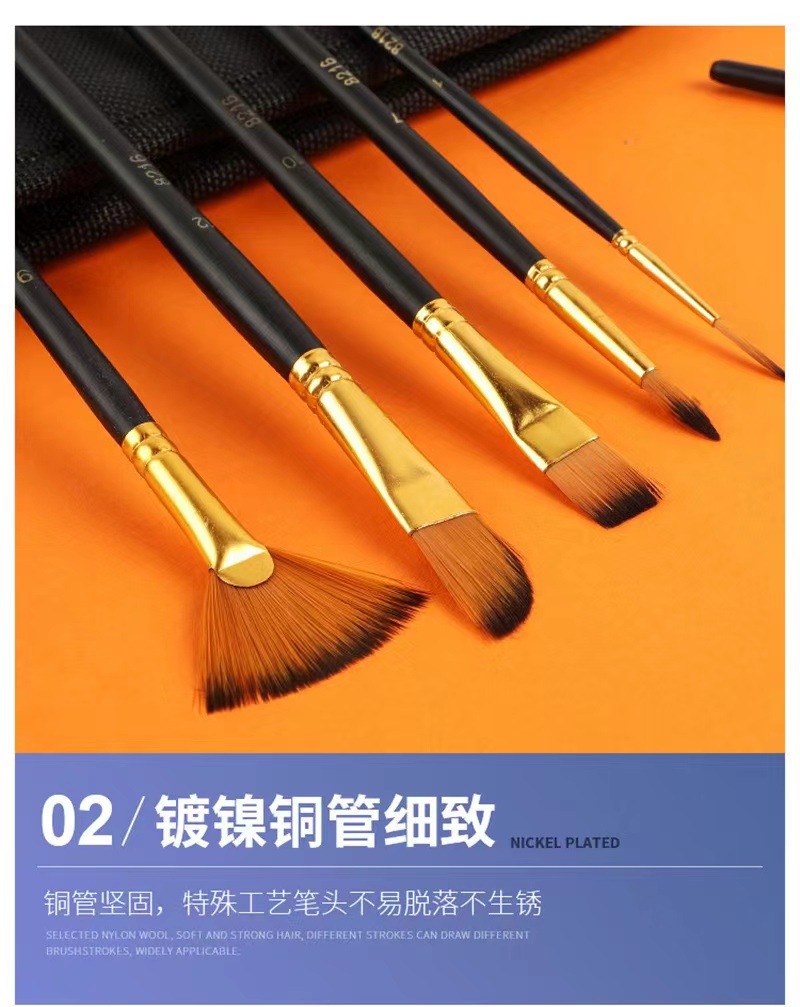 Набор из 12 нейлоновых кистей для гуаши, акварели, масляной живописи для студентов, акриловые кисти, кисти из волчьей шерсти